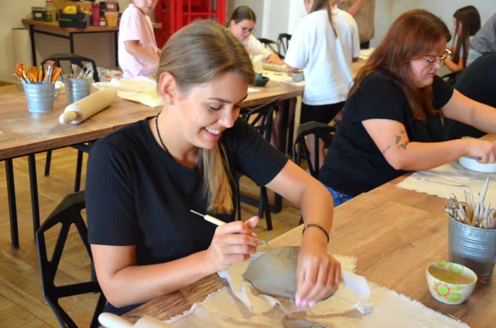 Ceramiczne cuda powstały podczas pierwszych z cyklu zajęć realizowanych w ramach projektu pt. „Kultura w Ruchu: wycieczki, warsztaty i plenerowe wydarzenia”. 14 lipca w CK odbyły się warsztaty ceramiczne dla dzieci i dla dorosłych. Obie grupy wykonywały piękne naczynia, które następnie ozdobiły. Efekty możecie zobaczyć sami!
