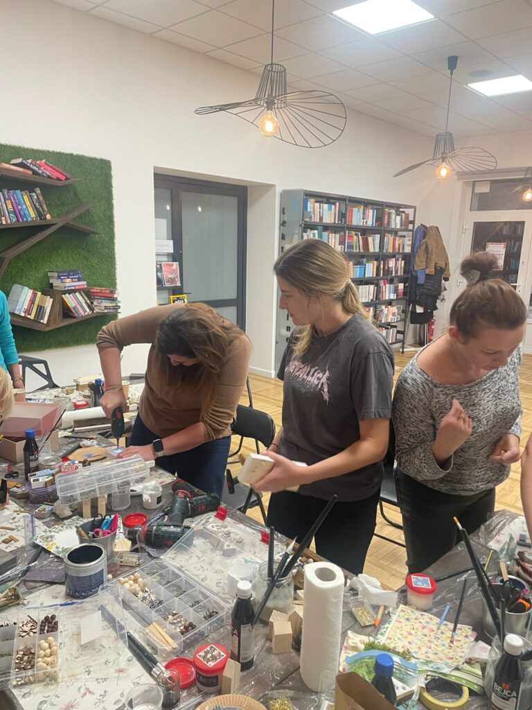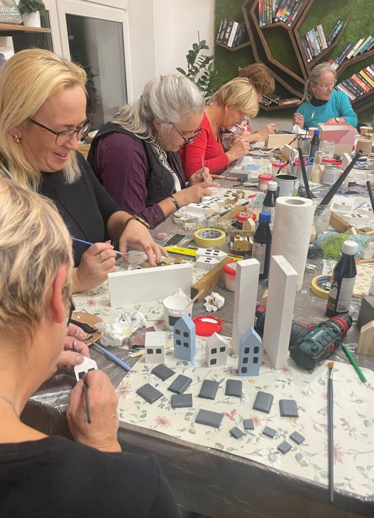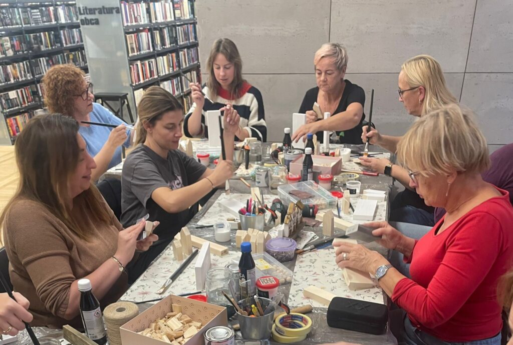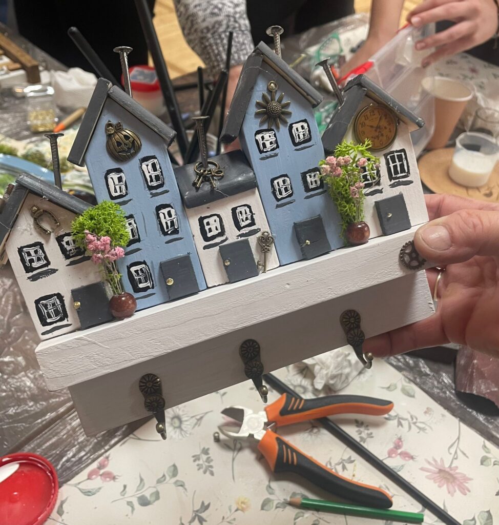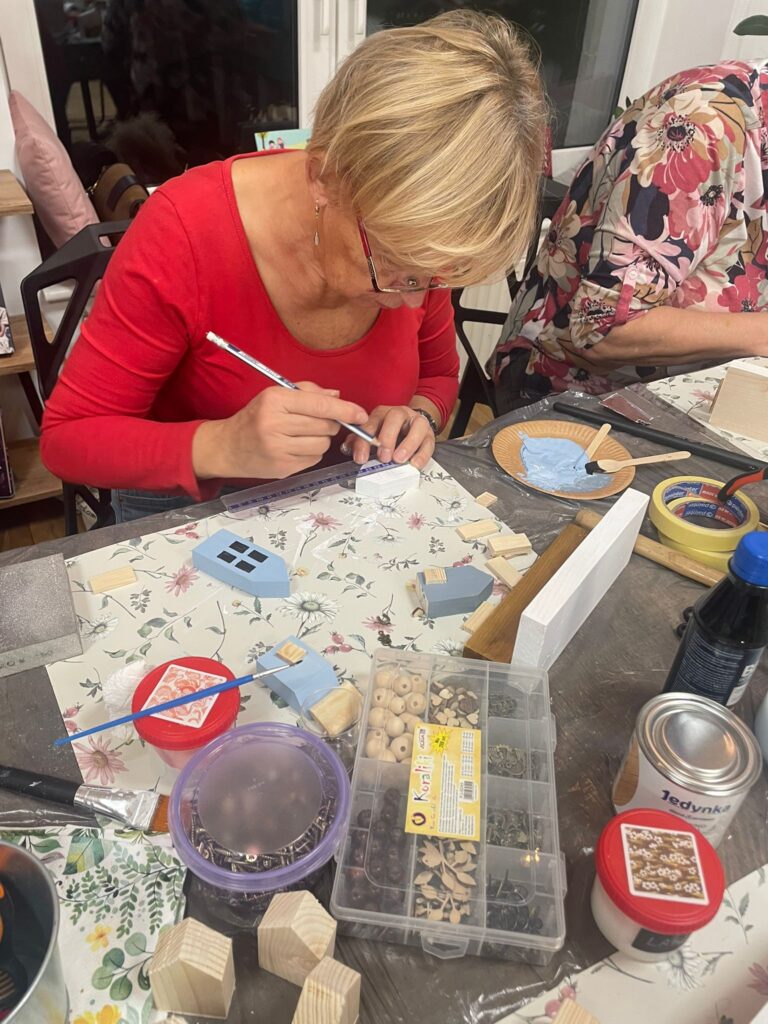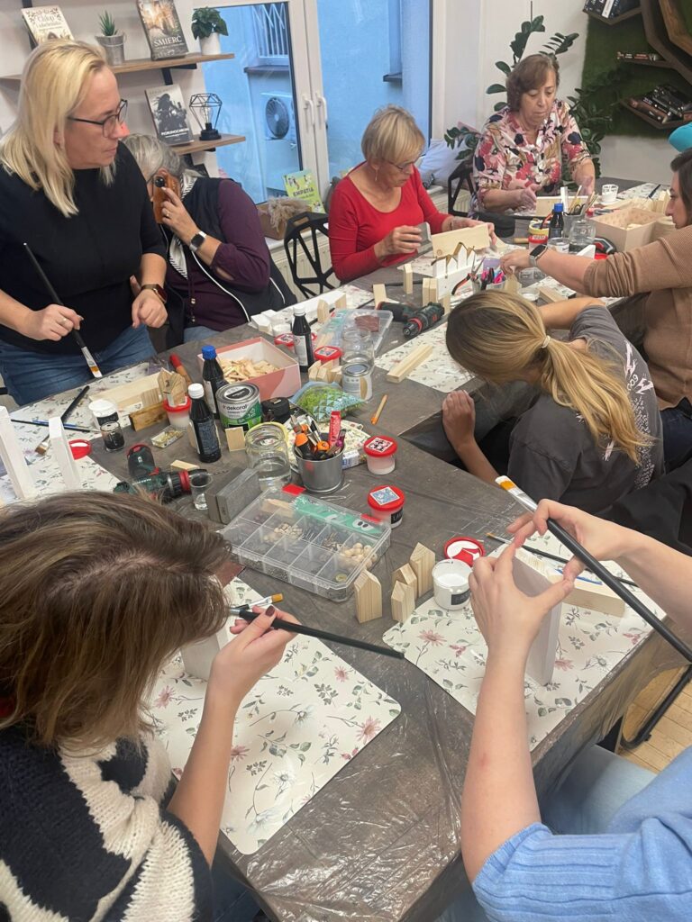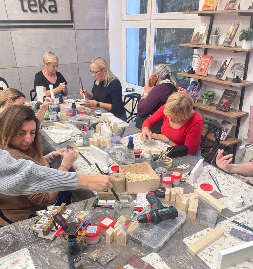 „Dama z wkrętarką” to warsztaty, które już po raz drugi zrealizowało KGW Gogolewo-Świączyń. Tym razem uczestniczki spotkały się 14.10 w bibliotece, gdzie wykonały według własnego pomysłu i koncepcji dekoracyjne wieszaki, bazując na naturalnych materiałach. Podczas zajęć wykorzystały m.in.: bejce, farby, lakiery. Aby stworzyć te niepowtarzalne, a zarazem praktyczne dekoracje skorzystały również z młotków, wiertarek, wkrętarek. Zobaczcie sami efekty pracy tych dam! 😉