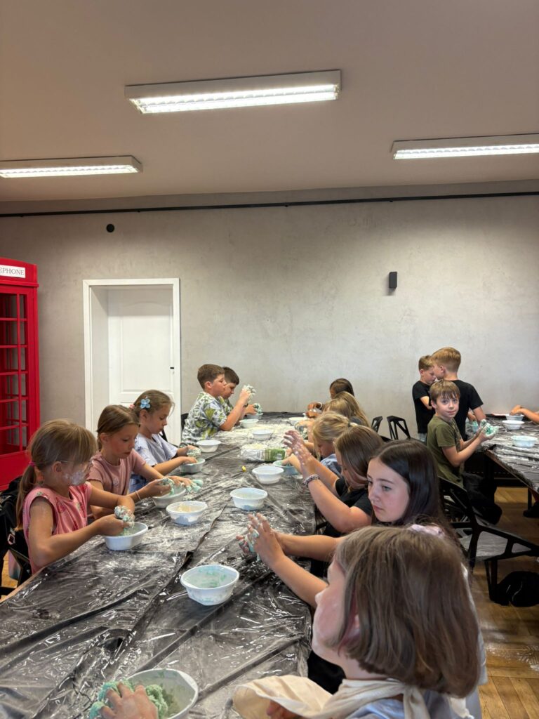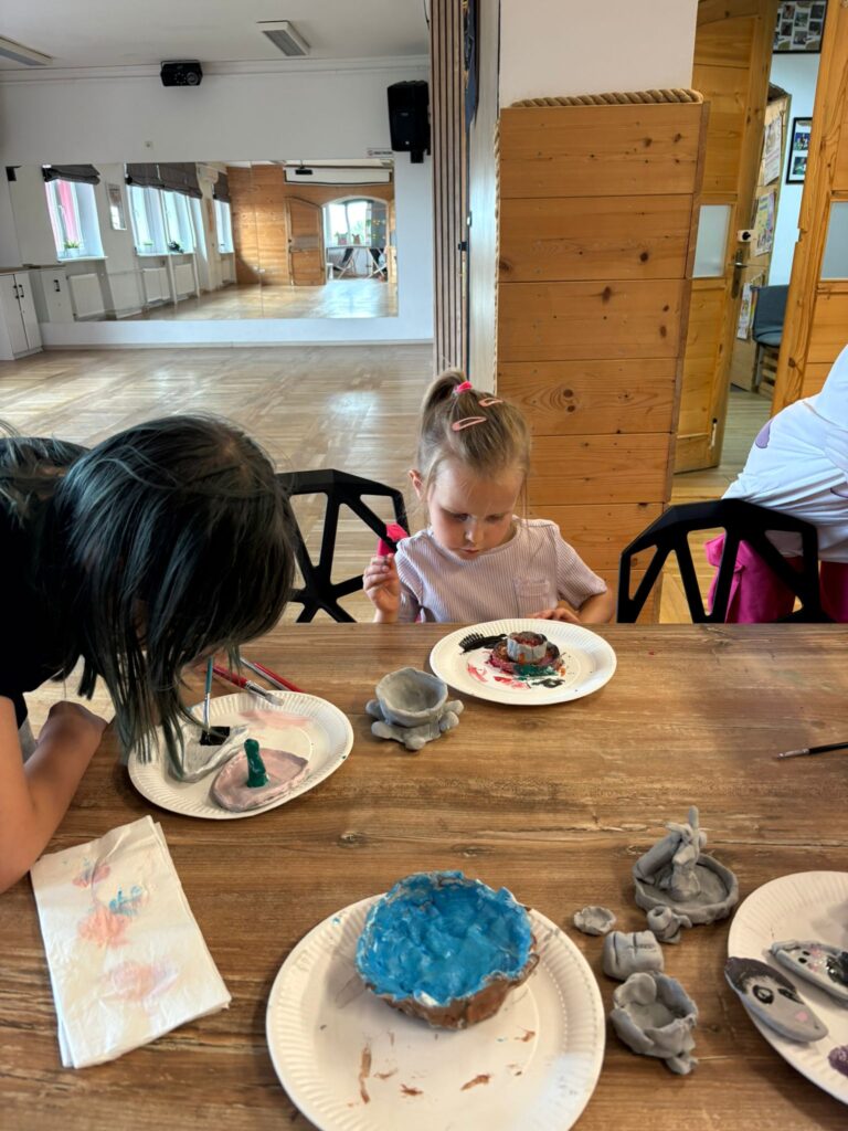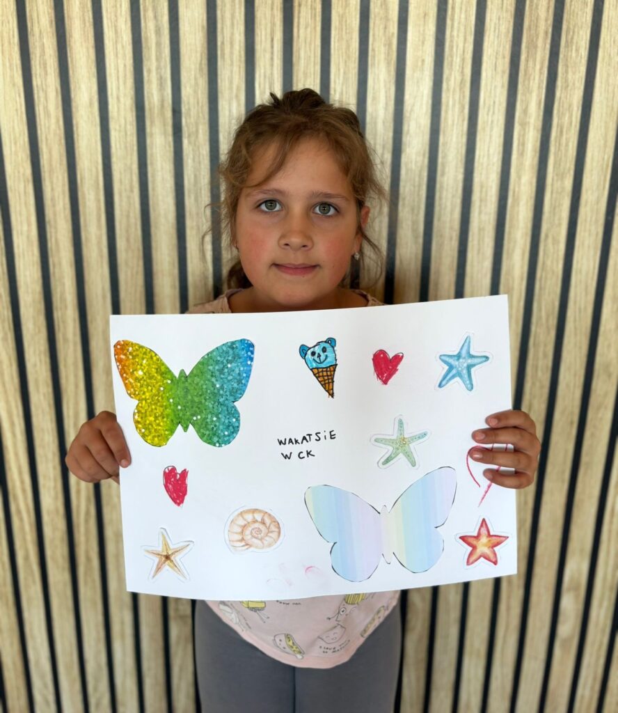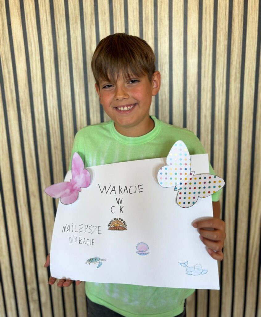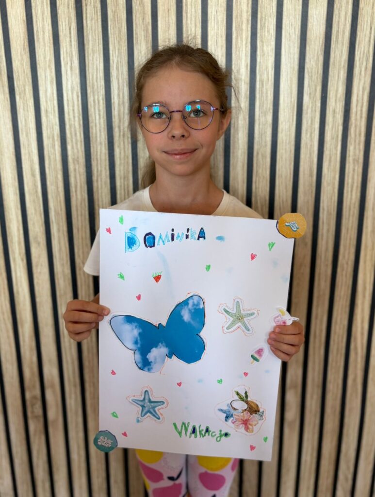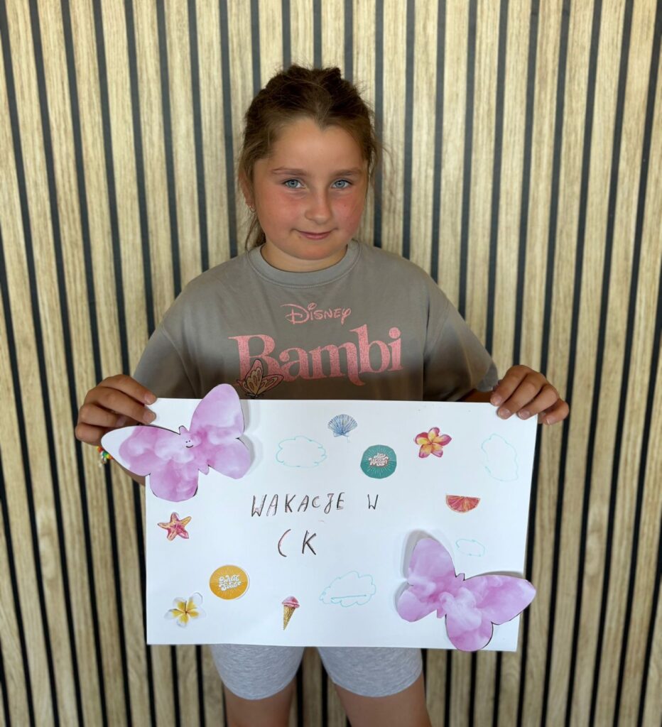 Za nami m.in. przygotowanie plakatów wakacyjnych, „magicznych butelek” 😉, a także zabawy w parku „Ogrody Strzeleckie”. W tym czasie w CK odwiedziła nas także wiceburmistrz Mirelli Grześkowiak, z którą „zaliczyliśmy” cenną lekcję o segregacji odpadów. Oprócz tego pomalowaliśmy wcześniej zrobione z gliny drobiazgi dekoracyjne (samochodziki, postaci z bajek itp.) oraz zrobiliśmy autorskie slimy.