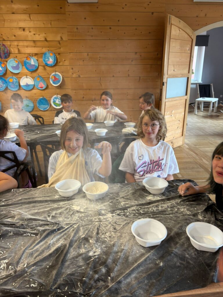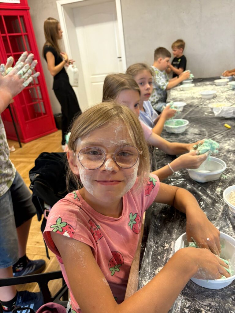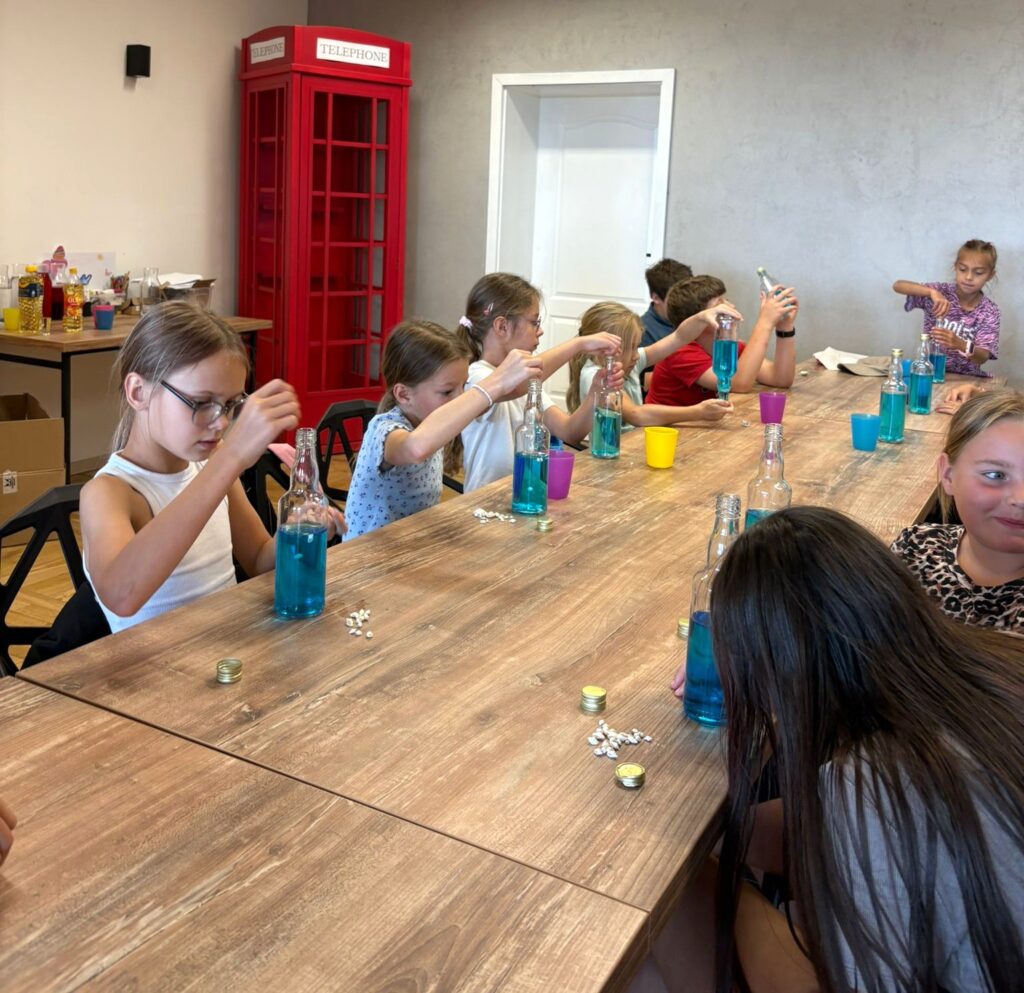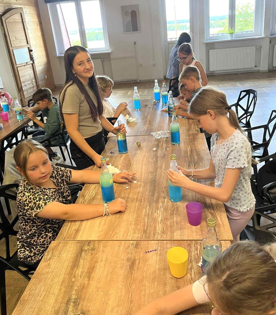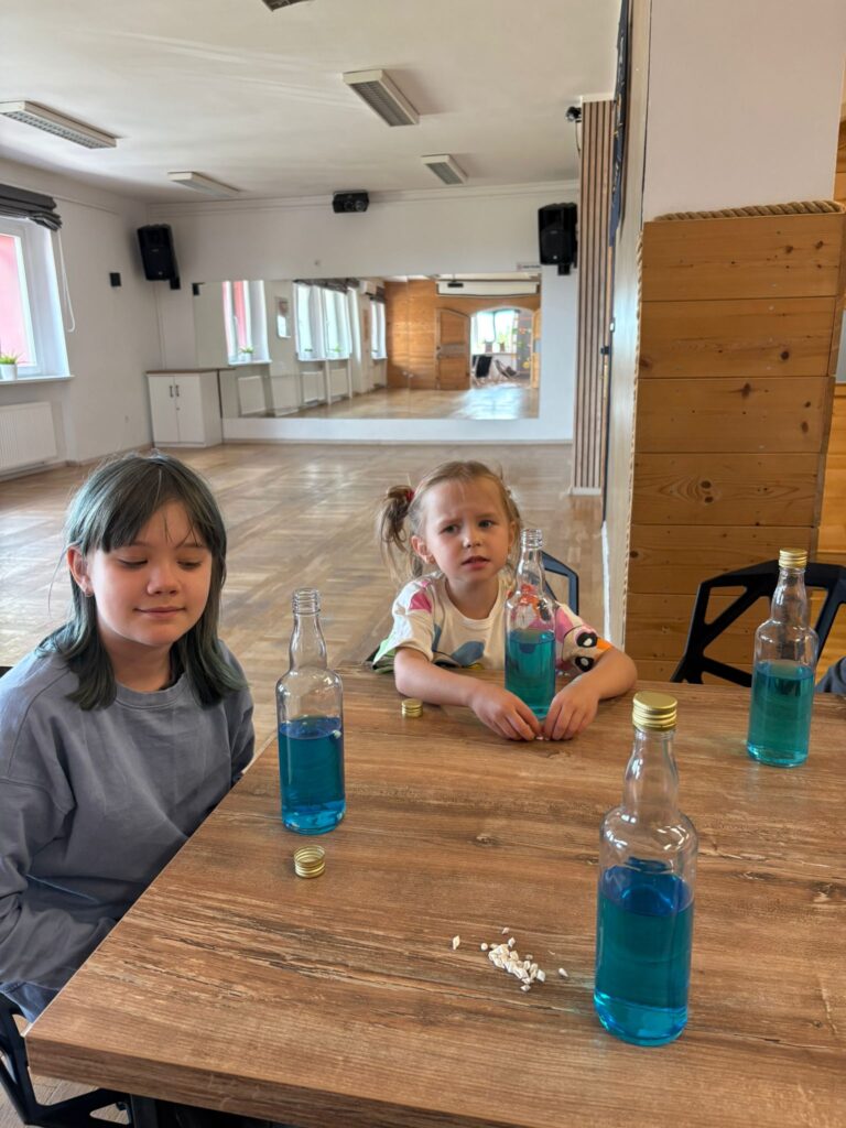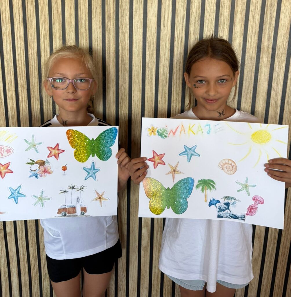 Za nami m.in. przygotowanie plakatów wakacyjnych, „magicznych butelek” 😉, a także zabawy w parku „Ogrody Strzeleckie”. W tym czasie w CK odwiedziła nas także wiceburmistrz Mirelli Grześkowiak, z którą „zaliczyliśmy” cenną lekcję o segregacji odpadów. Oprócz tego pomalowaliśmy wcześniej zrobione z gliny drobiazgi dekoracyjne (samochodziki, postaci z bajek itp.) oraz zrobiliśmy autorskie slimy.