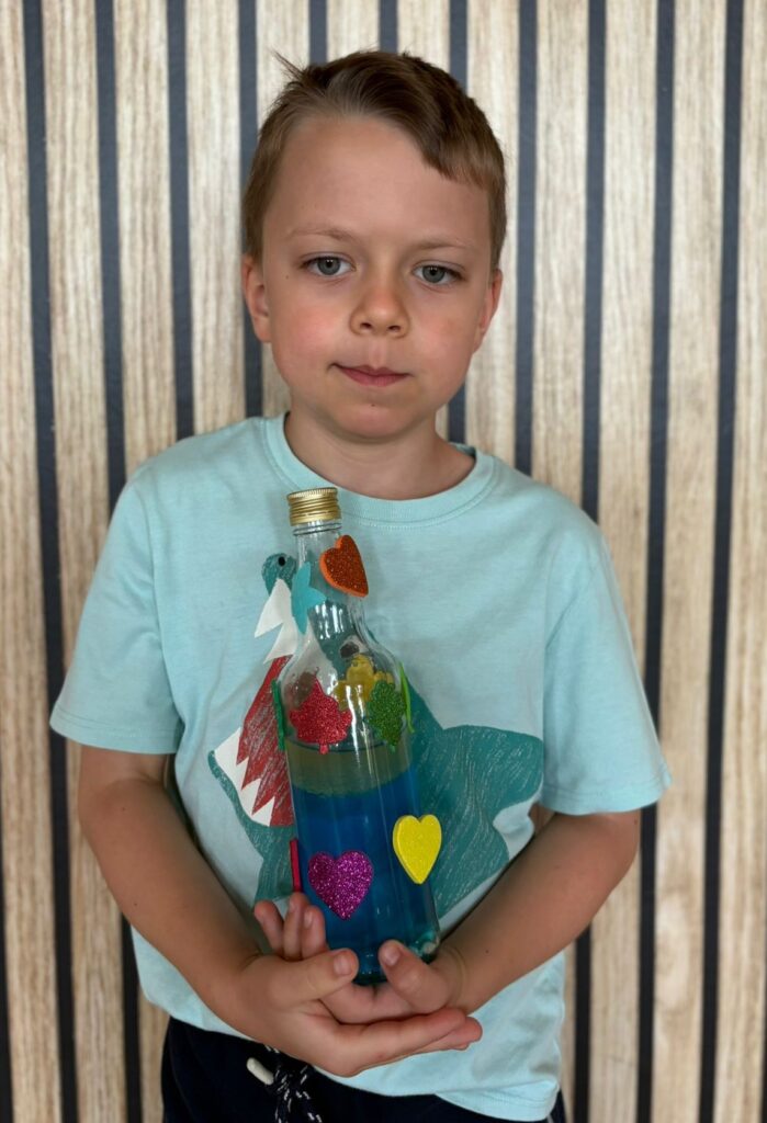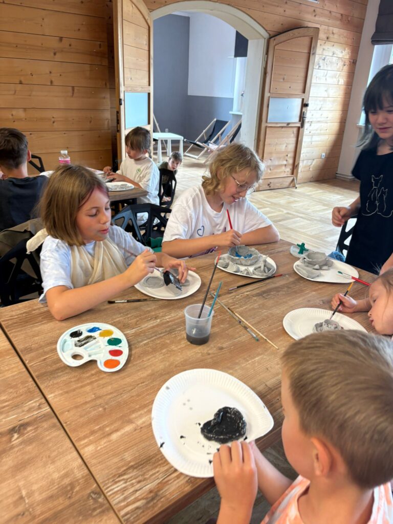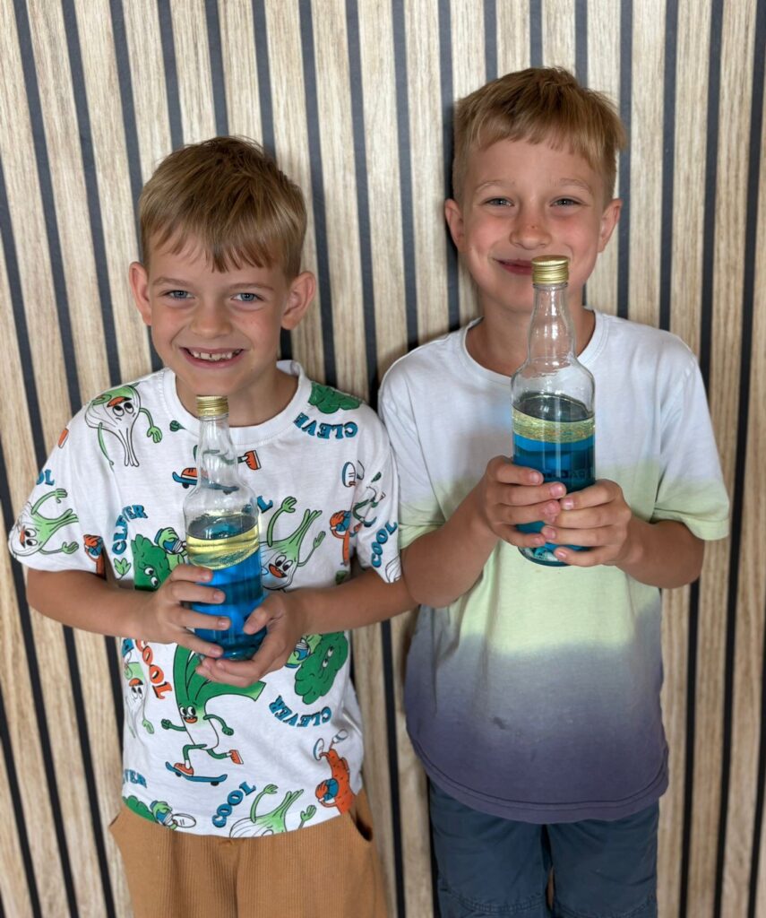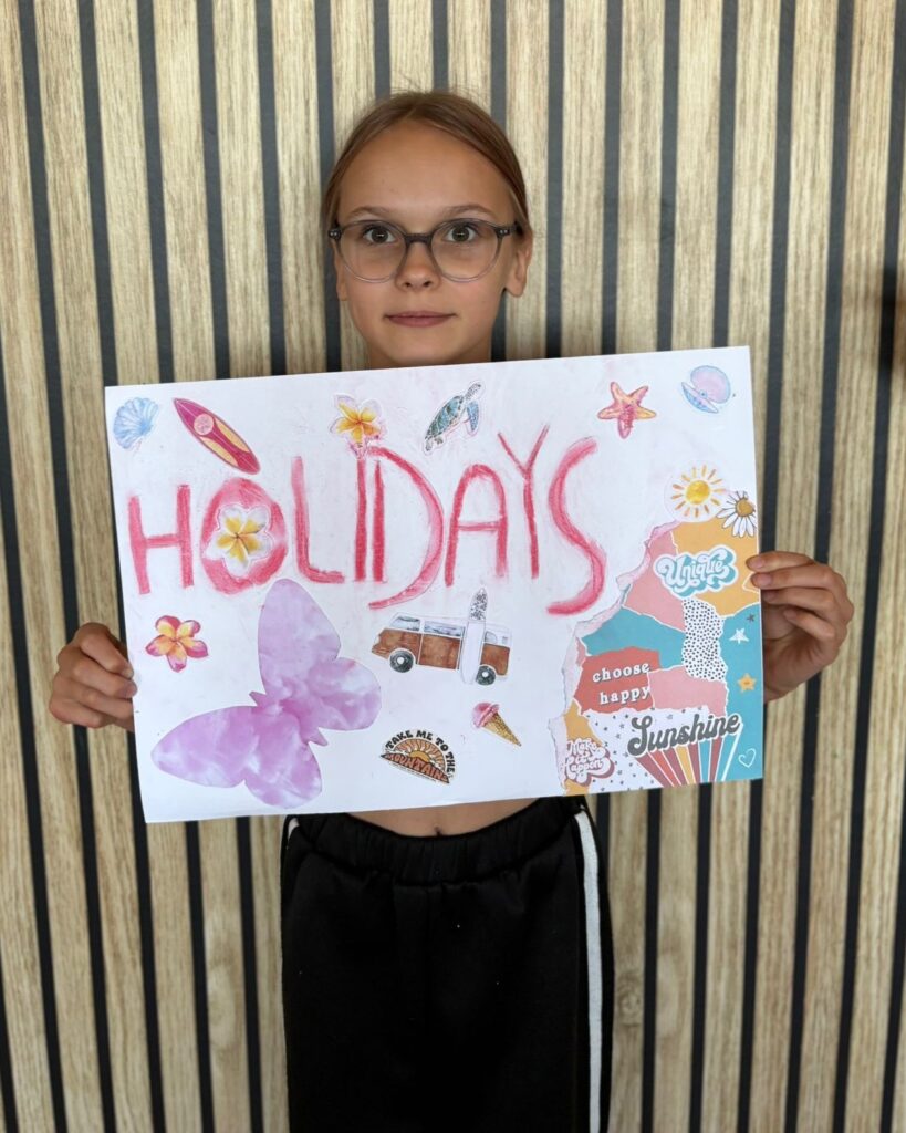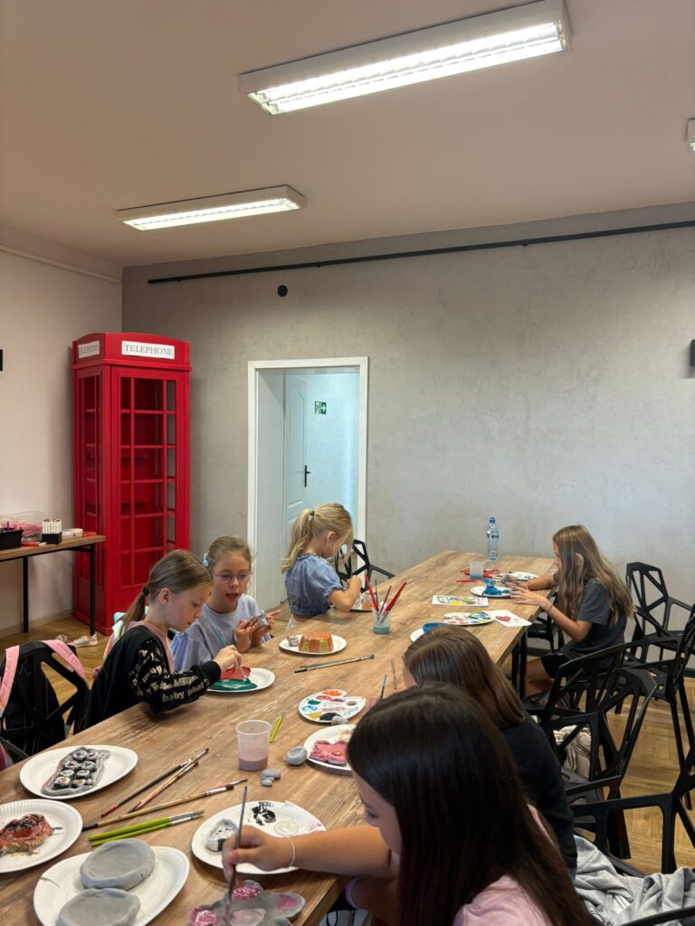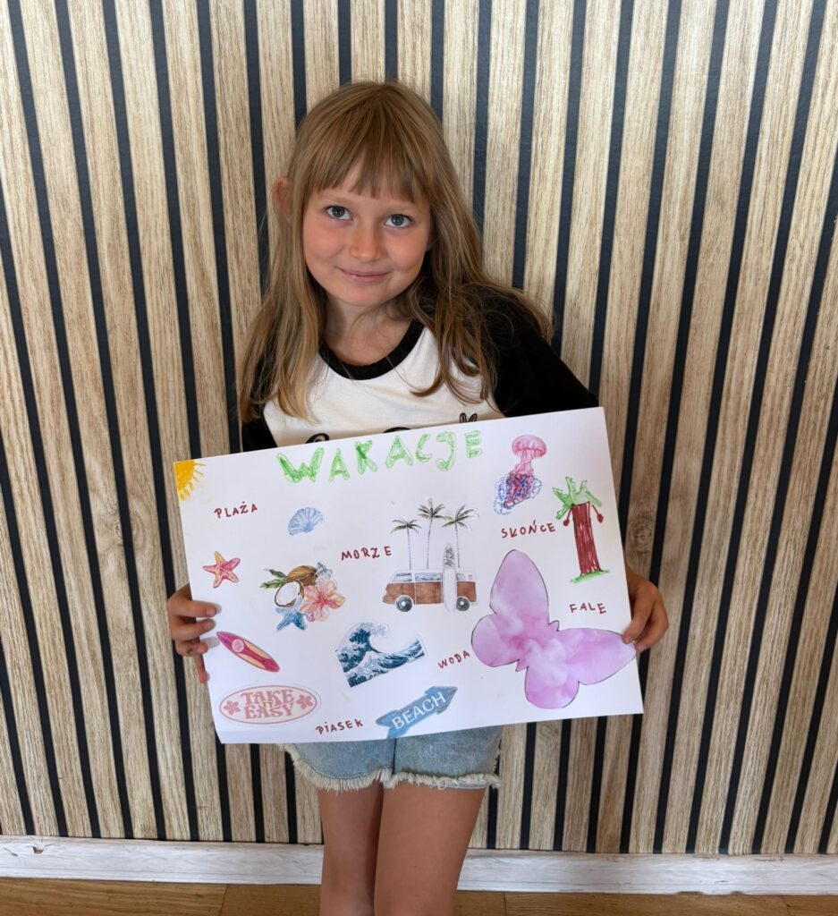 Za nami m.in. przygotowanie plakatów wakacyjnych, „magicznych butelek” 😉, a także zabawy w parku „Ogrody Strzeleckie”. W tym czasie w CK odwiedziła nas także wiceburmistrz Mirelli Grześkowiak, z którą „zaliczyliśmy” cenną lekcję o segregacji odpadów. Oprócz tego pomalowaliśmy wcześniej zrobione z gliny drobiazgi dekoracyjne (samochodziki, postaci z bajek itp.) oraz zrobiliśmy autorskie slimy.