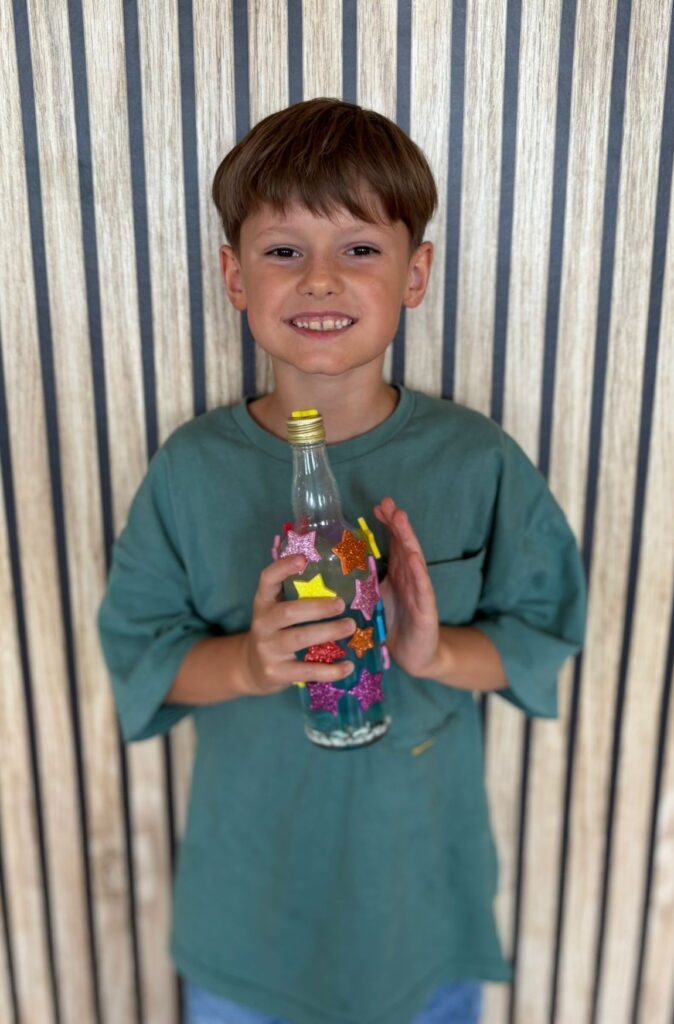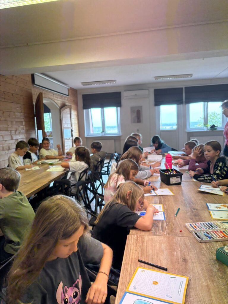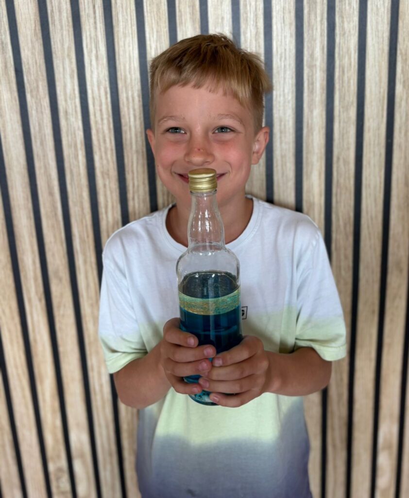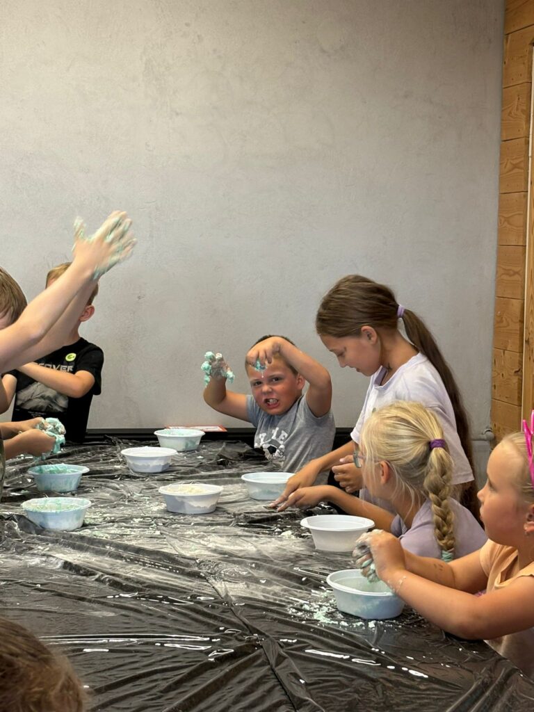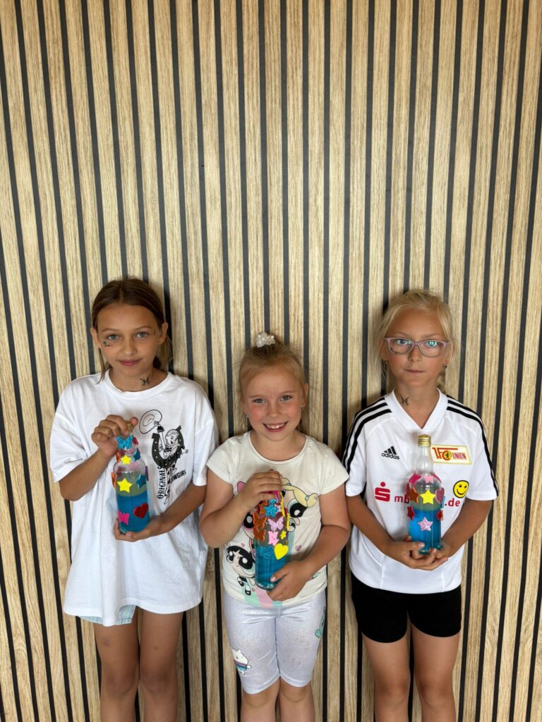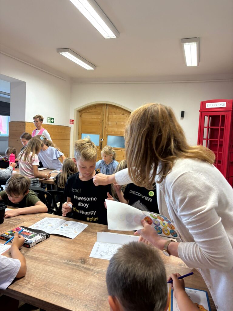 Za nami m.in. przygotowanie plakatów wakacyjnych, „magicznych butelek” 😉, a także zabawy w parku „Ogrody Strzeleckie”. W tym czasie w CK odwiedziła nas także wiceburmistrz Mirelli Grześkowiak, z którą „zaliczyliśmy” cenną lekcję o segregacji odpadów. Oprócz tego pomalowaliśmy wcześniej zrobione z gliny drobiazgi dekoracyjne (samochodziki, postaci z bajek itp.) oraz zrobiliśmy autorskie slimy.