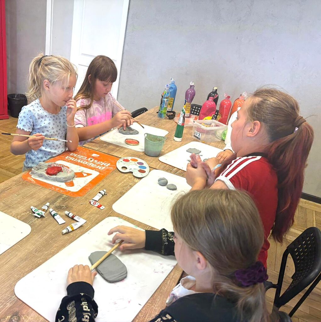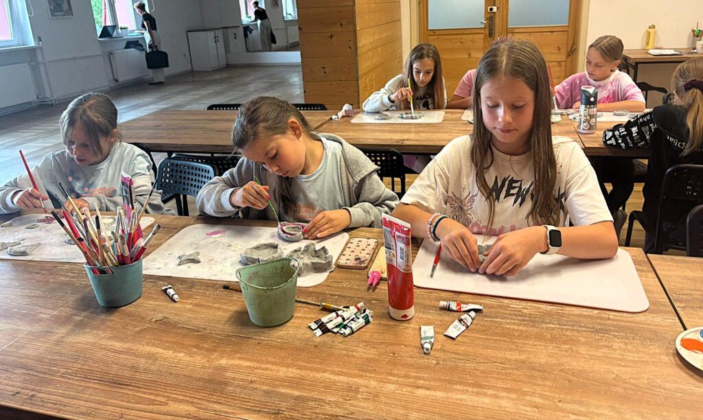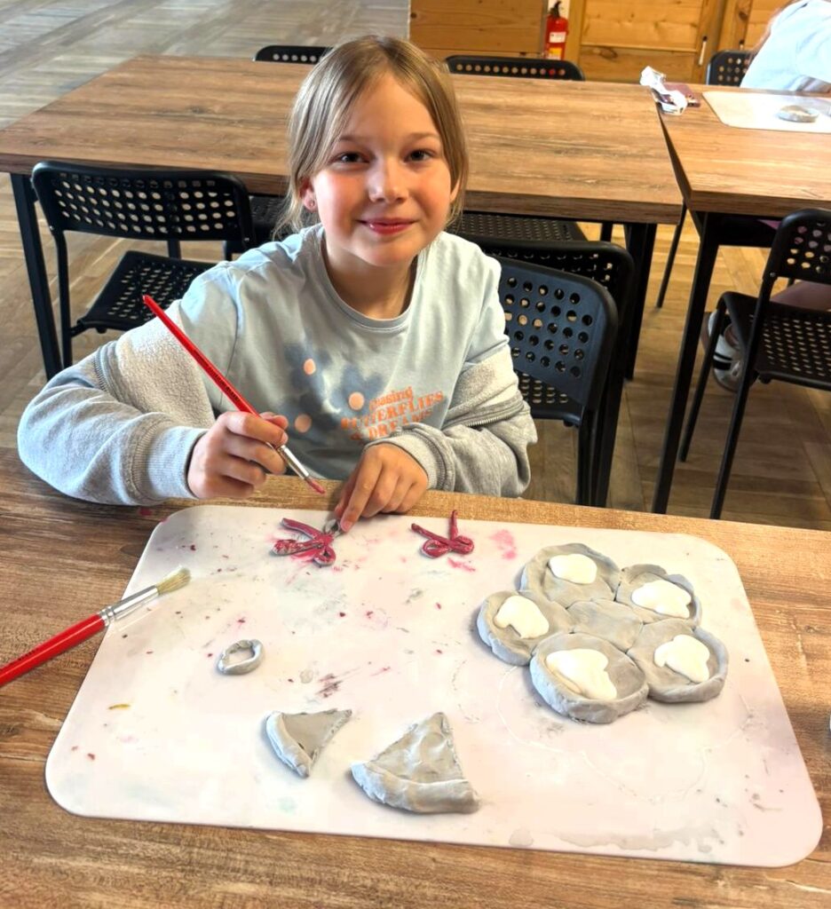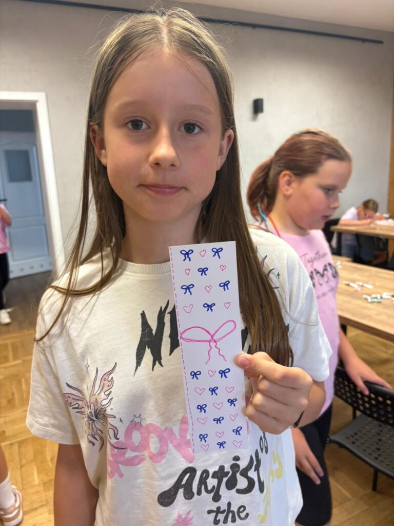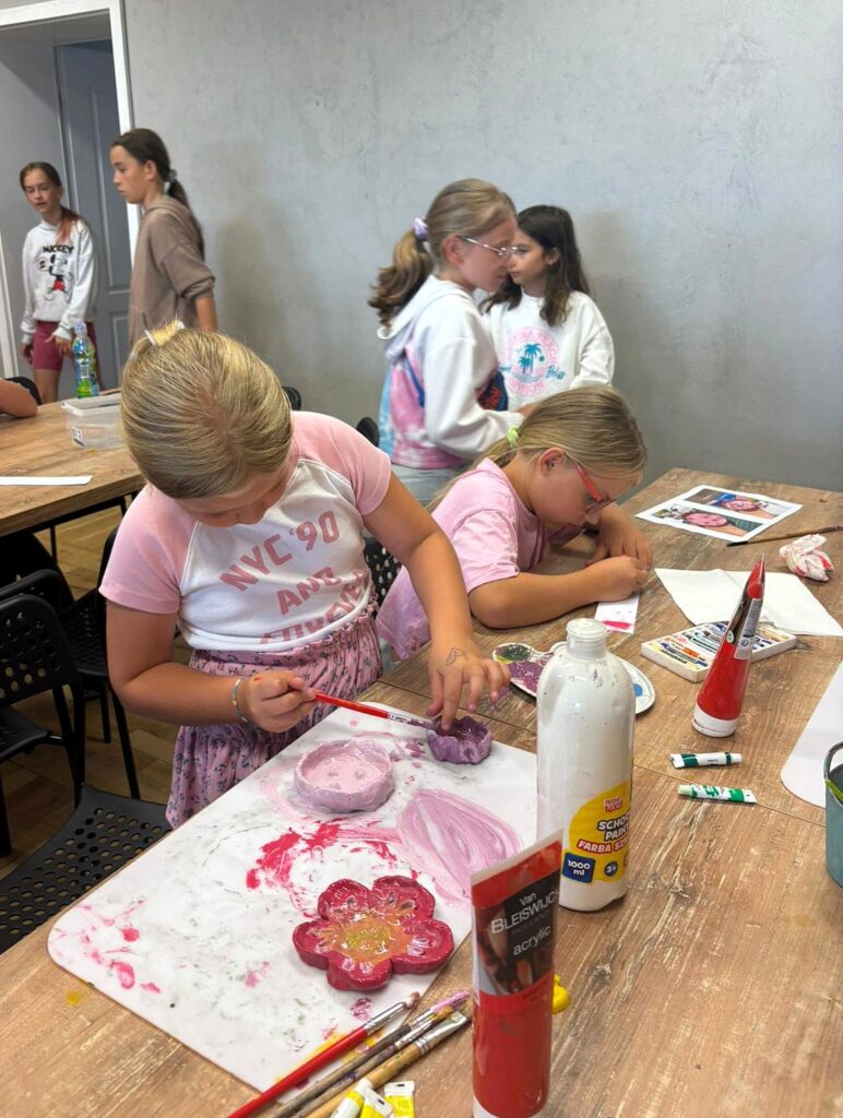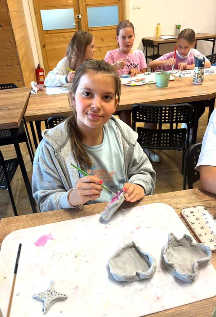 Wczoraj po raz drugi Półkoloniary spotkały się z Wanessą w CK. 😉 Tym razem na zajęciach m.in. pomalowały gliniane dekoracje, które zrobiły tydzień wcześniej. Potem z nakrętek wykonały podstawkę na biżuterię, a następnie zakładki do książek. To było baaaaaaaaardzo kreatywne popołudnie! 😉