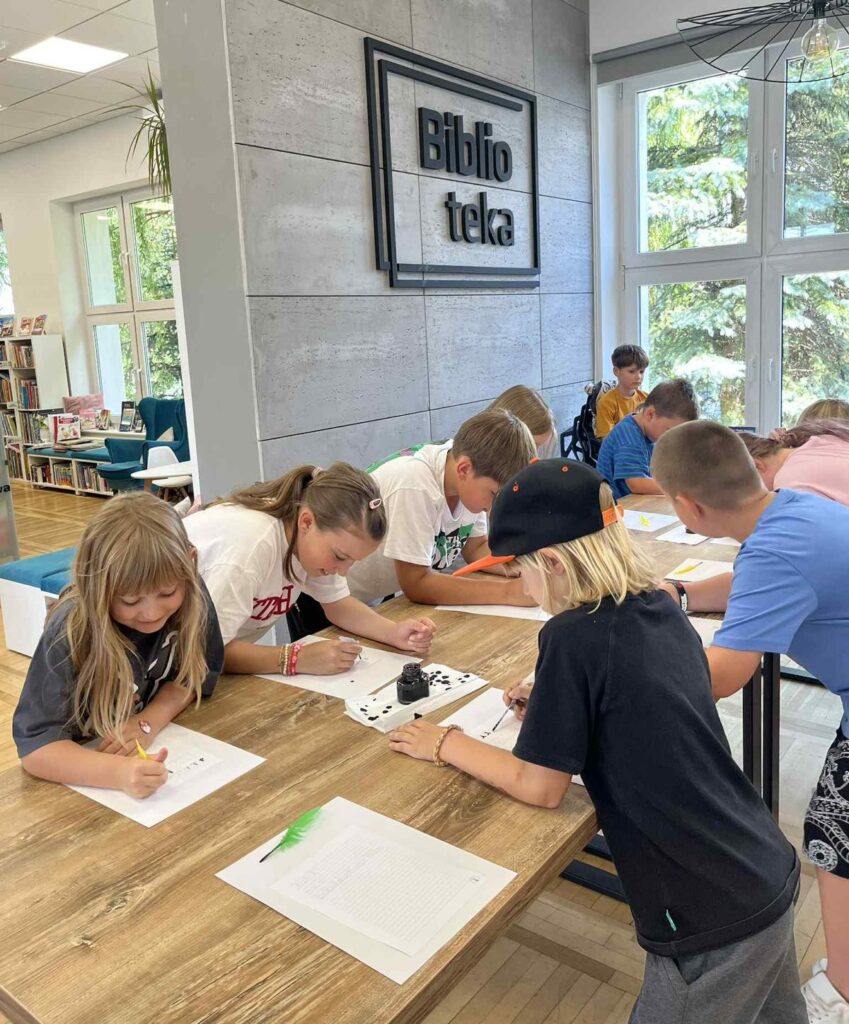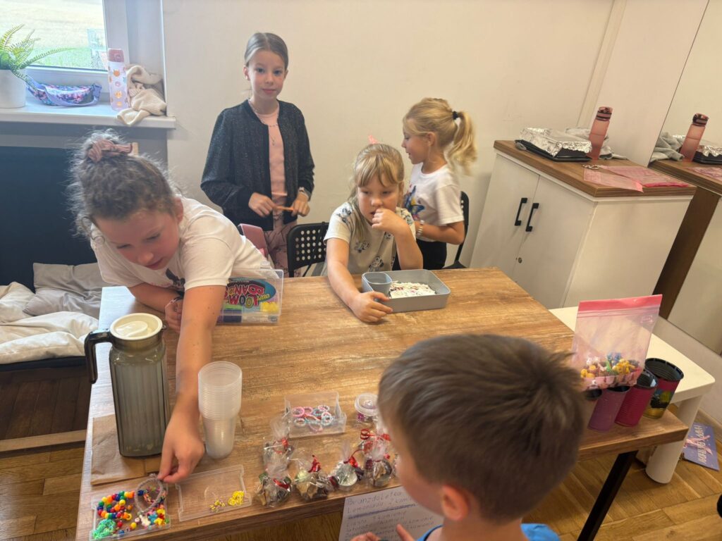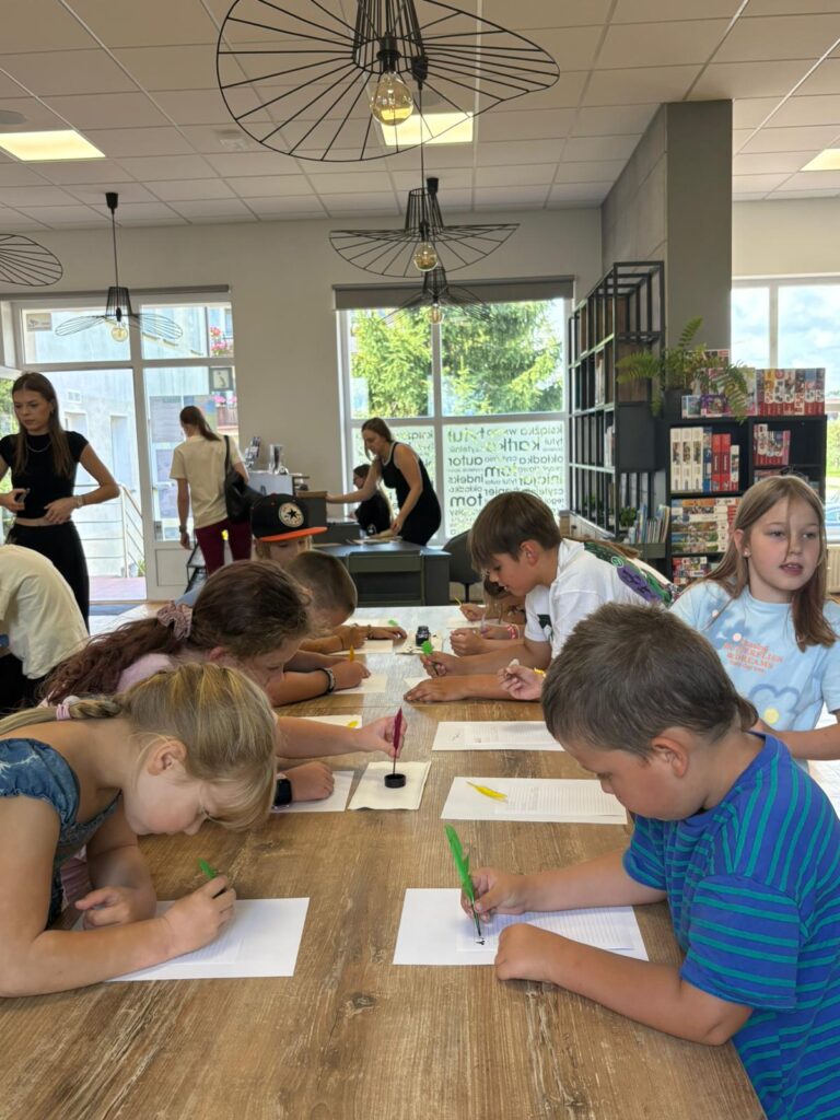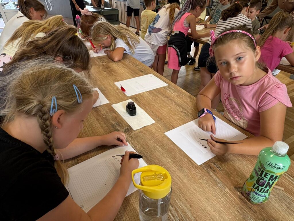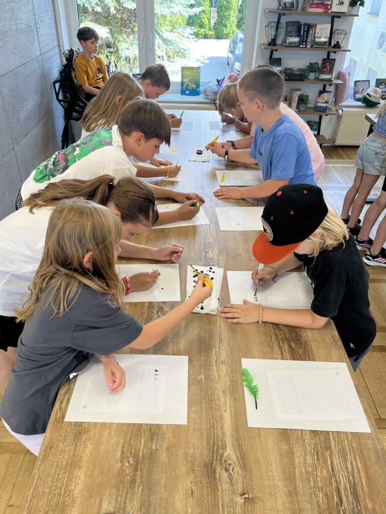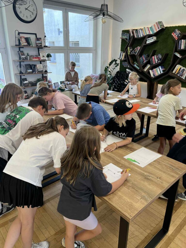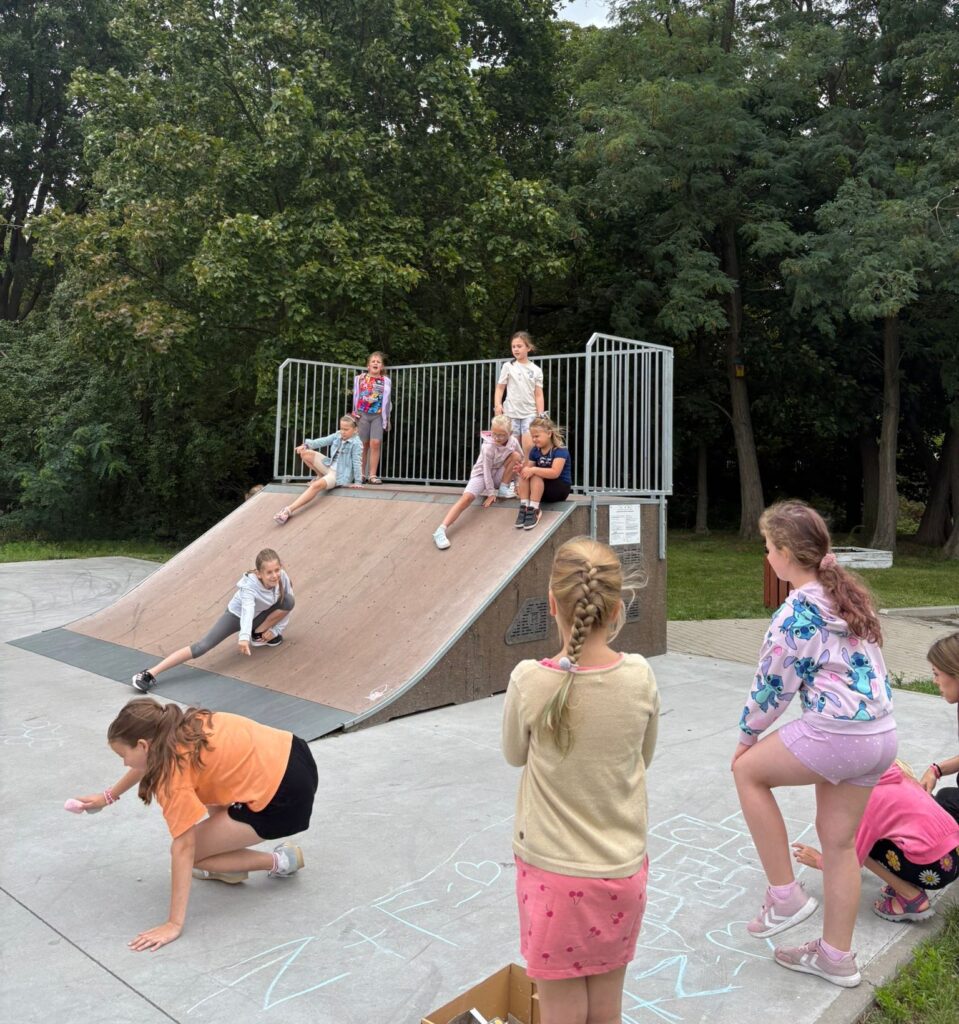 Czas na krótkie podsumowanie ostatnich dni pierwszego tygodnia II turnusu półkolonii z CK! Razem z Anitą Szymanowską przygotowywaliśmy się dalej do występu na Dniach Książa Wlkp.’2025, z którego jesteśmy mega dumni 😉 Oprócz tego zaliczyliśmy lekcje chińskiego oraz kaligrafii w bibliotece, zajrzeliśmy do Anety Ptak, która pokazała nam hodowane pawie oraz świetnie się bawiliśmy w terenie – na skateparku oraz placu zabaw. Był również czas na wykonanie różnych zadań plastycznych oraz… otwarcie własnych biznesów! 😉