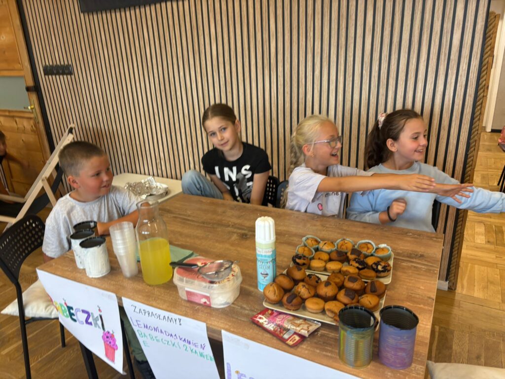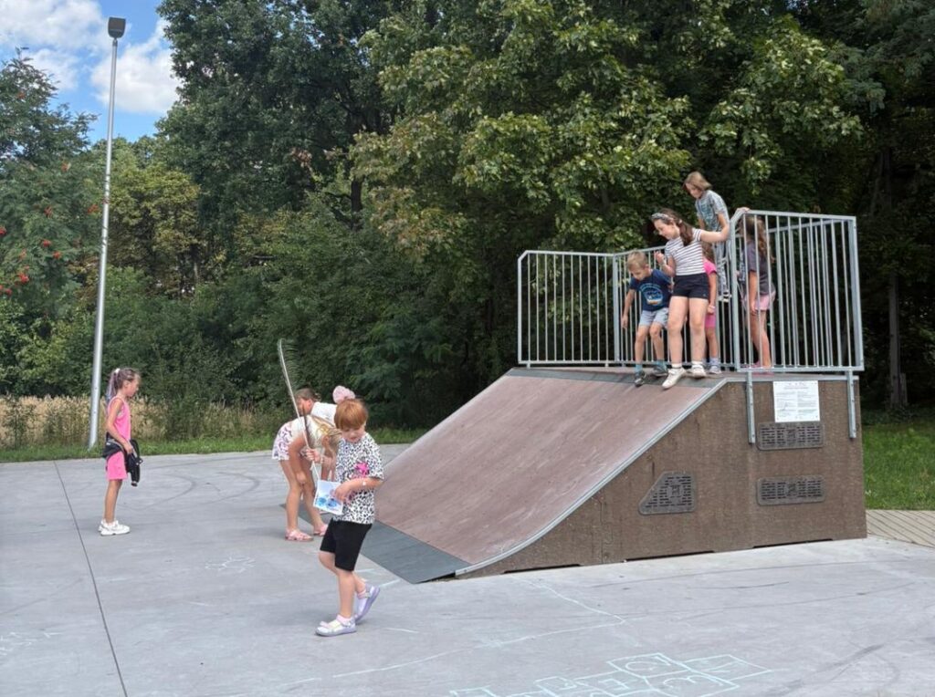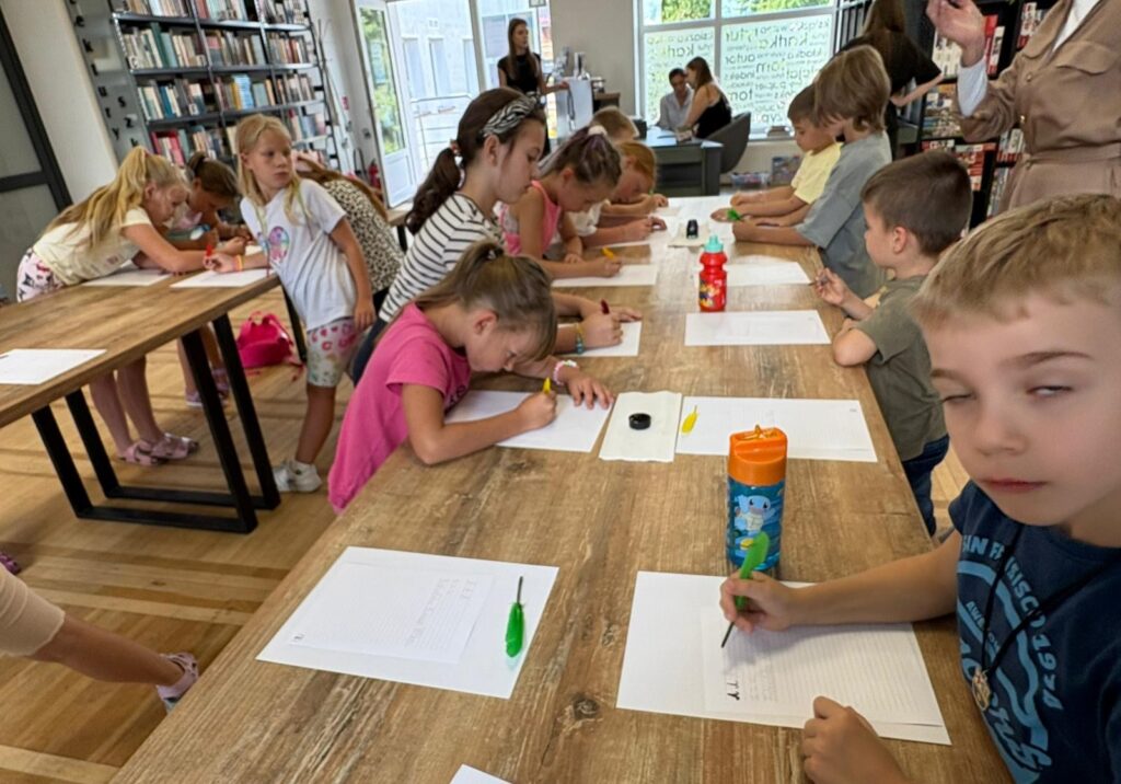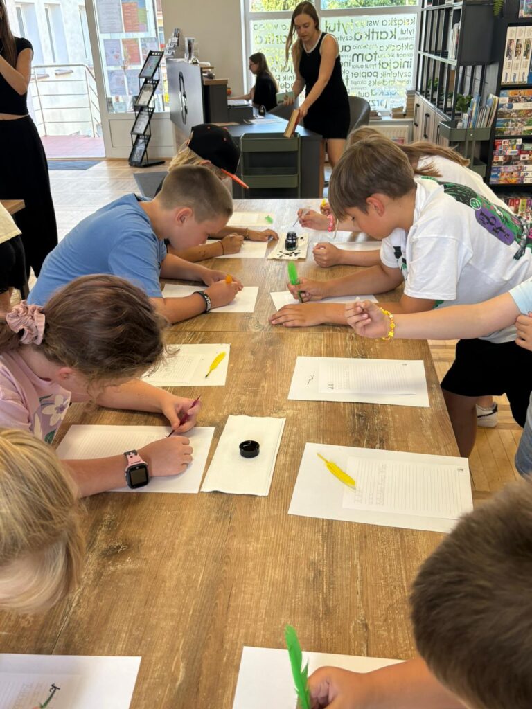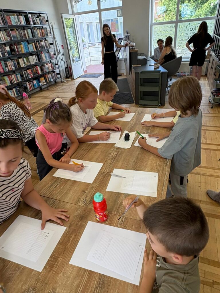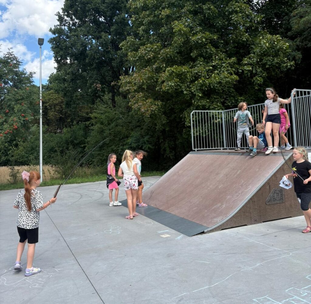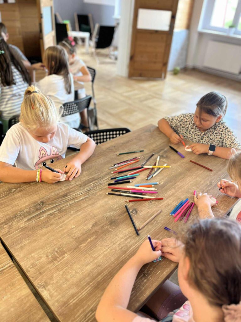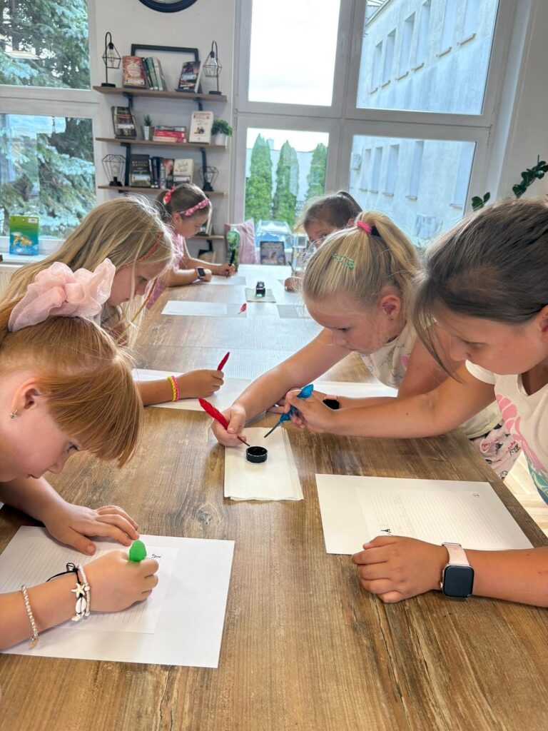 Czas na krótkie podsumowanie ostatnich dni pierwszego tygodnia II turnusu półkolonii z CK! Razem z Anitą Szymanowską przygotowywaliśmy się dalej do występu na Dniach Książa Wlkp.’2025, z którego jesteśmy mega dumni 😉 Oprócz tego zaliczyliśmy lekcje chińskiego oraz kaligrafii w bibliotece, zajrzeliśmy do Anety Ptak, która pokazała nam hodowane pawie oraz świetnie się bawiliśmy w terenie – na skateparku oraz placu zabaw. Był również czas na wykonanie różnych zadań plastycznych oraz… otwarcie własnych biznesów! 😉