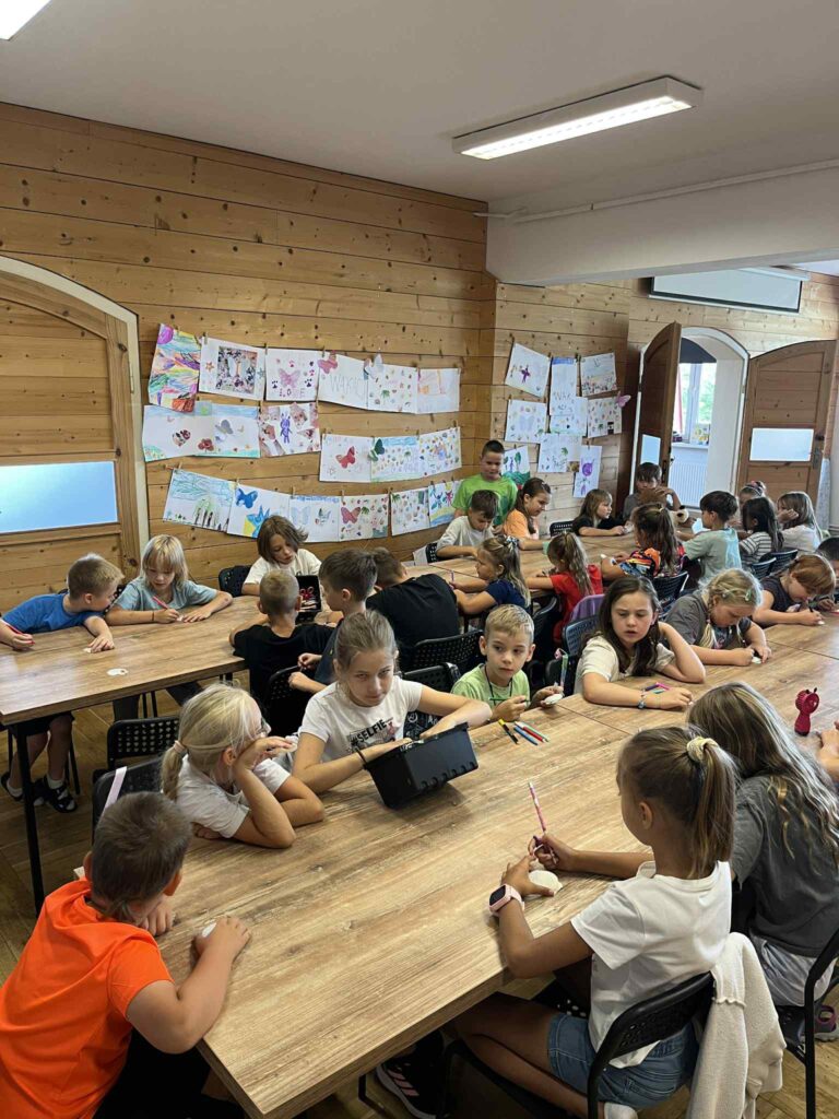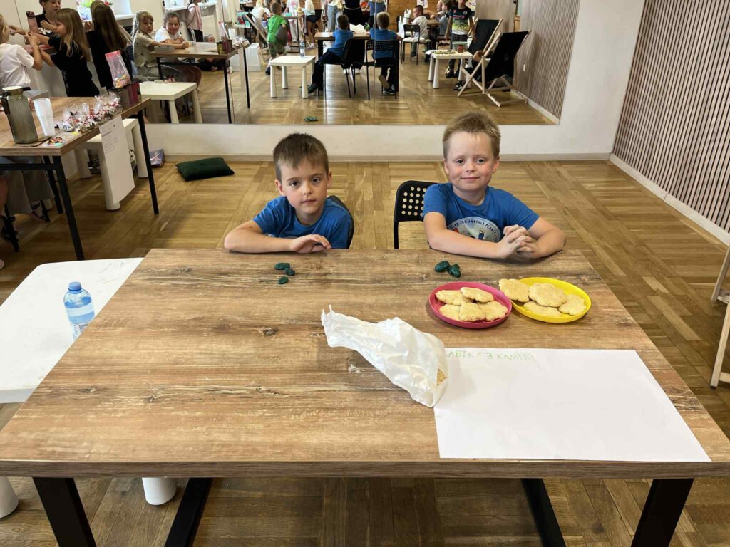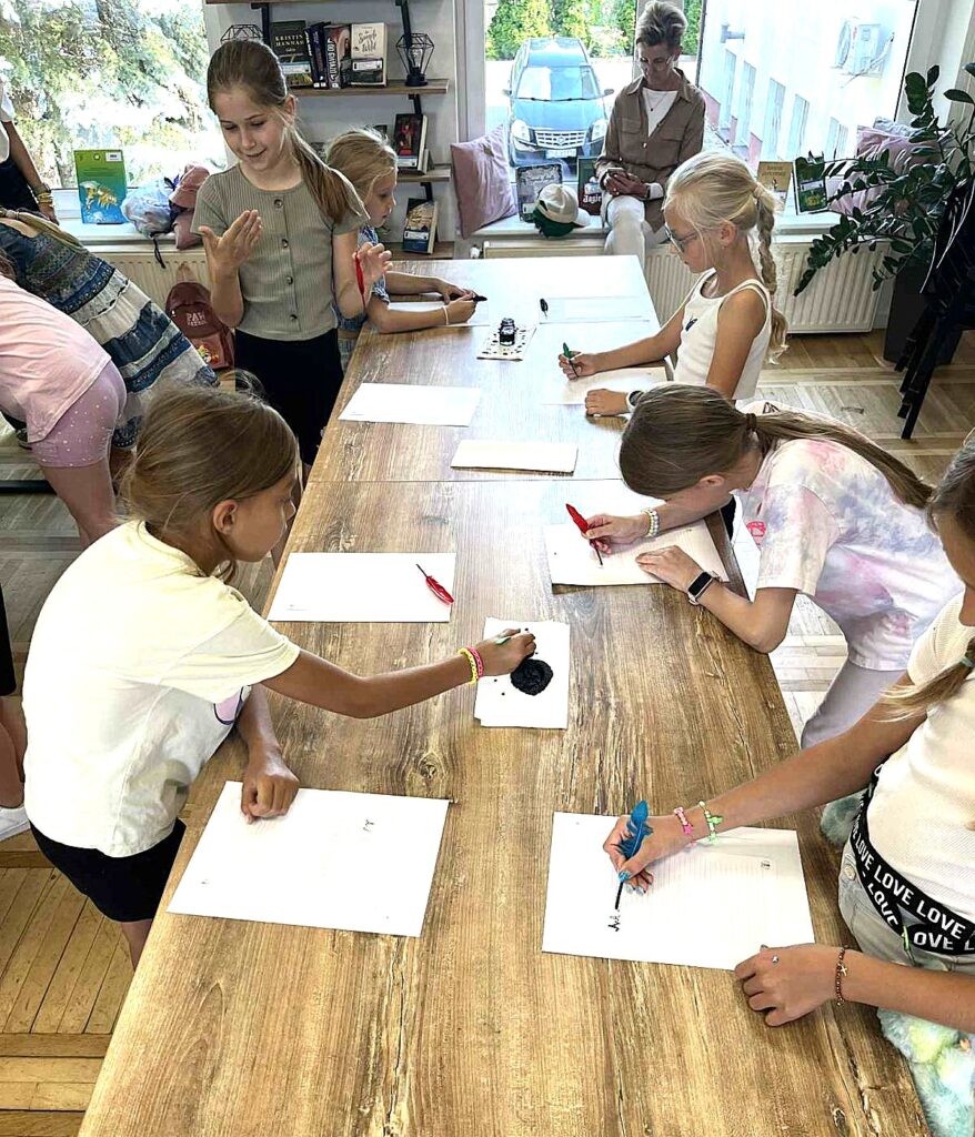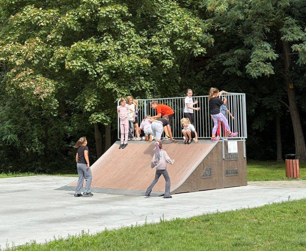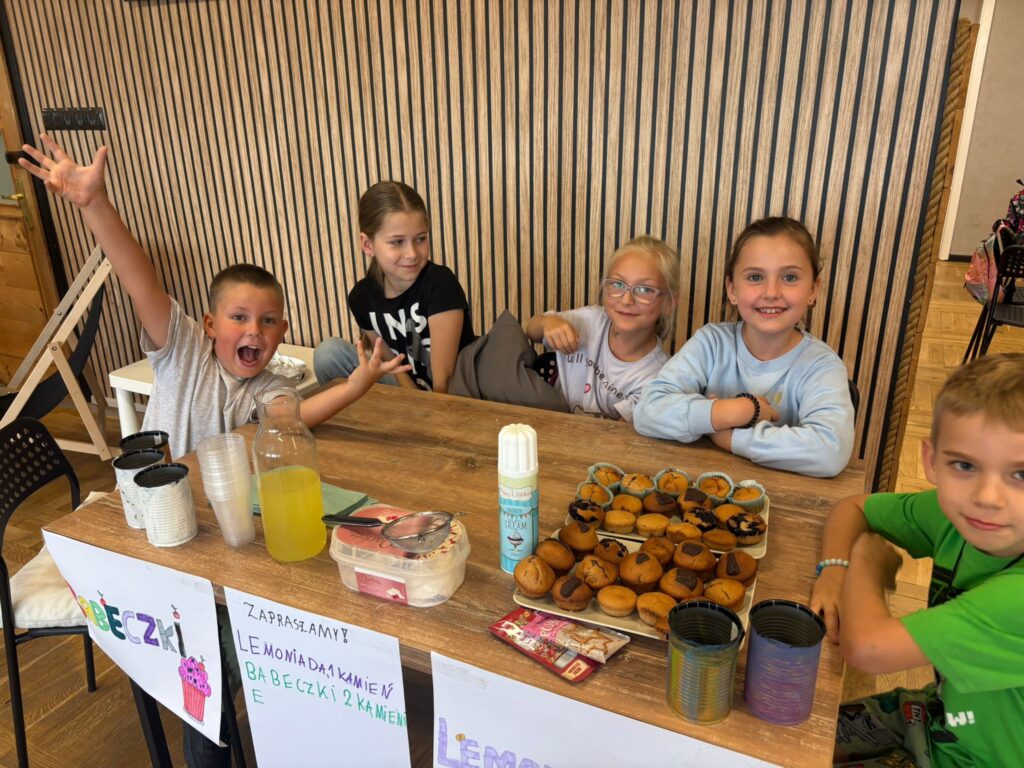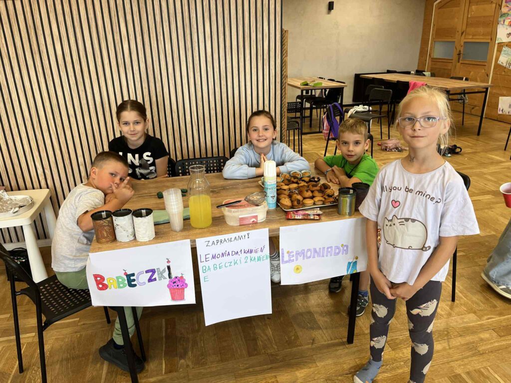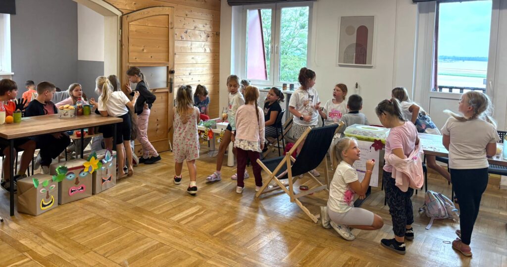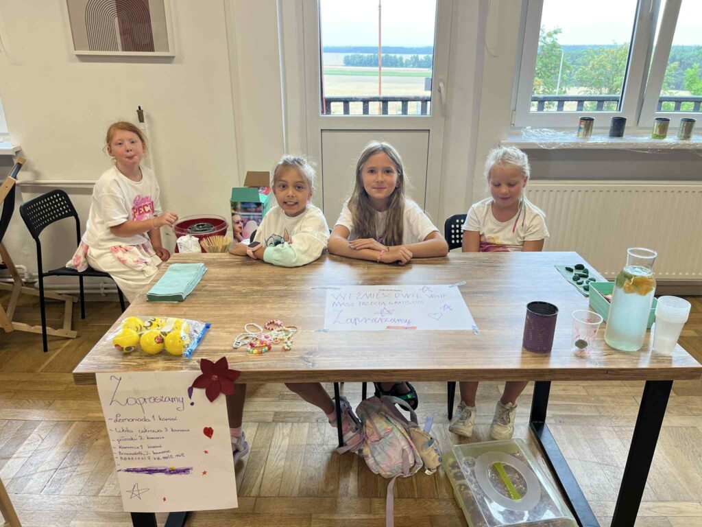 Czas na krótkie podsumowanie ostatnich dni pierwszego tygodnia II turnusu półkolonii z CK! Razem z Anitą Szymanowską przygotowywaliśmy się dalej do występu na Dniach Książa Wlkp.’2025, z którego jesteśmy mega dumni 😉 Oprócz tego zaliczyliśmy lekcje chińskiego oraz kaligrafii w bibliotece, zajrzeliśmy do Anety Ptak, która pokazała nam hodowane pawie oraz świetnie się bawiliśmy w terenie – na skateparku oraz placu zabaw. Był również czas na wykonanie różnych zadań plastycznych oraz… otwarcie własnych biznesów! 😉