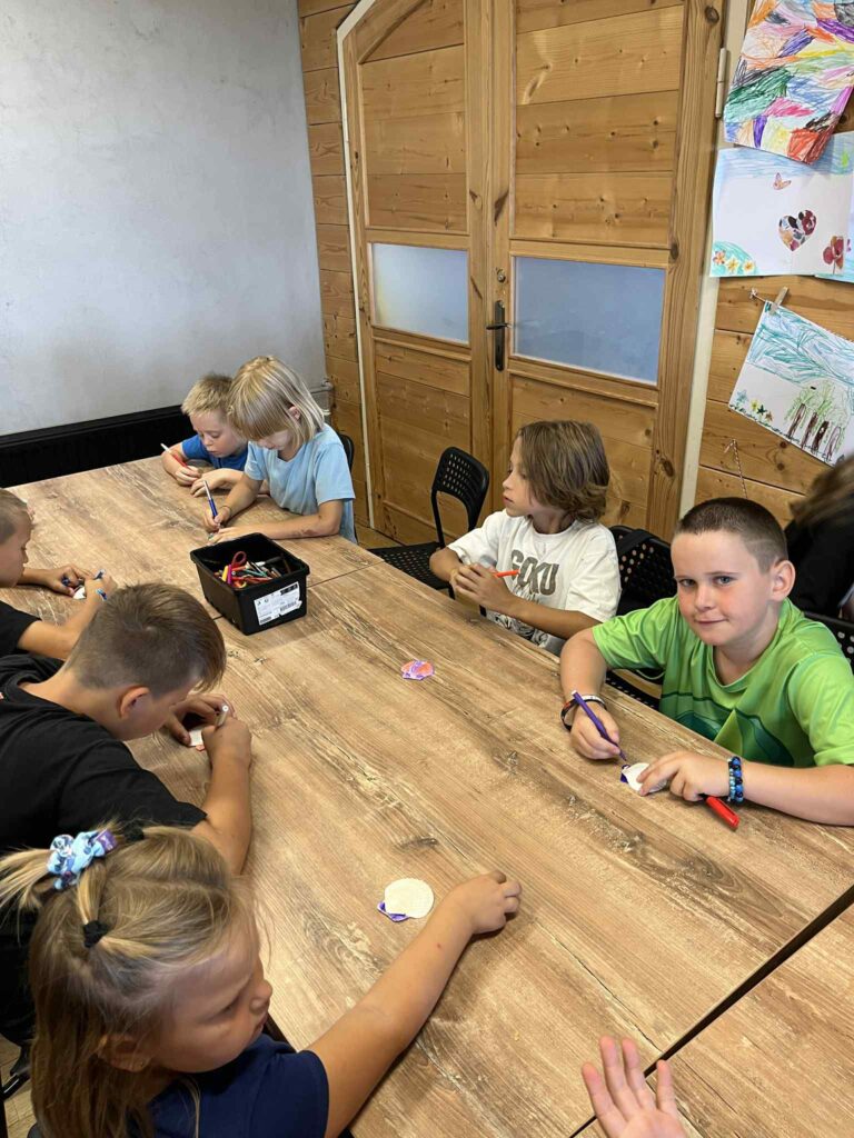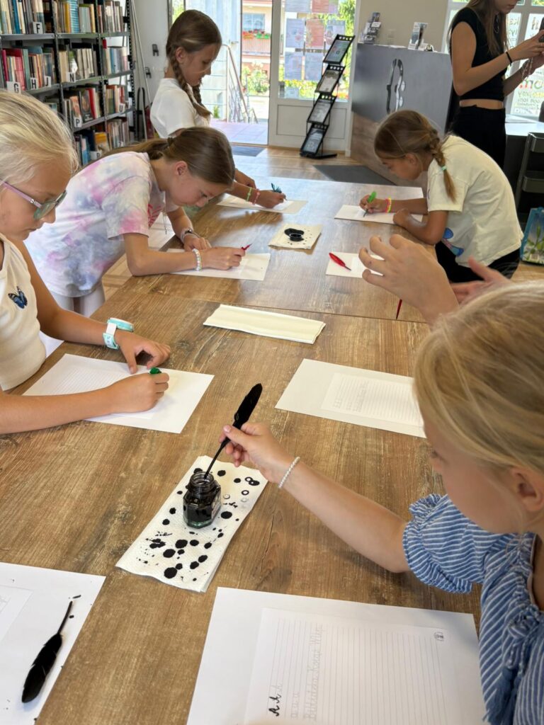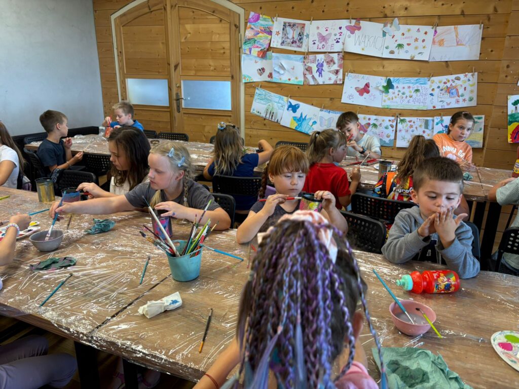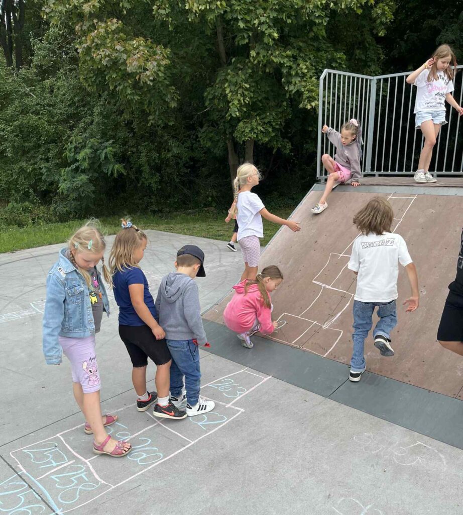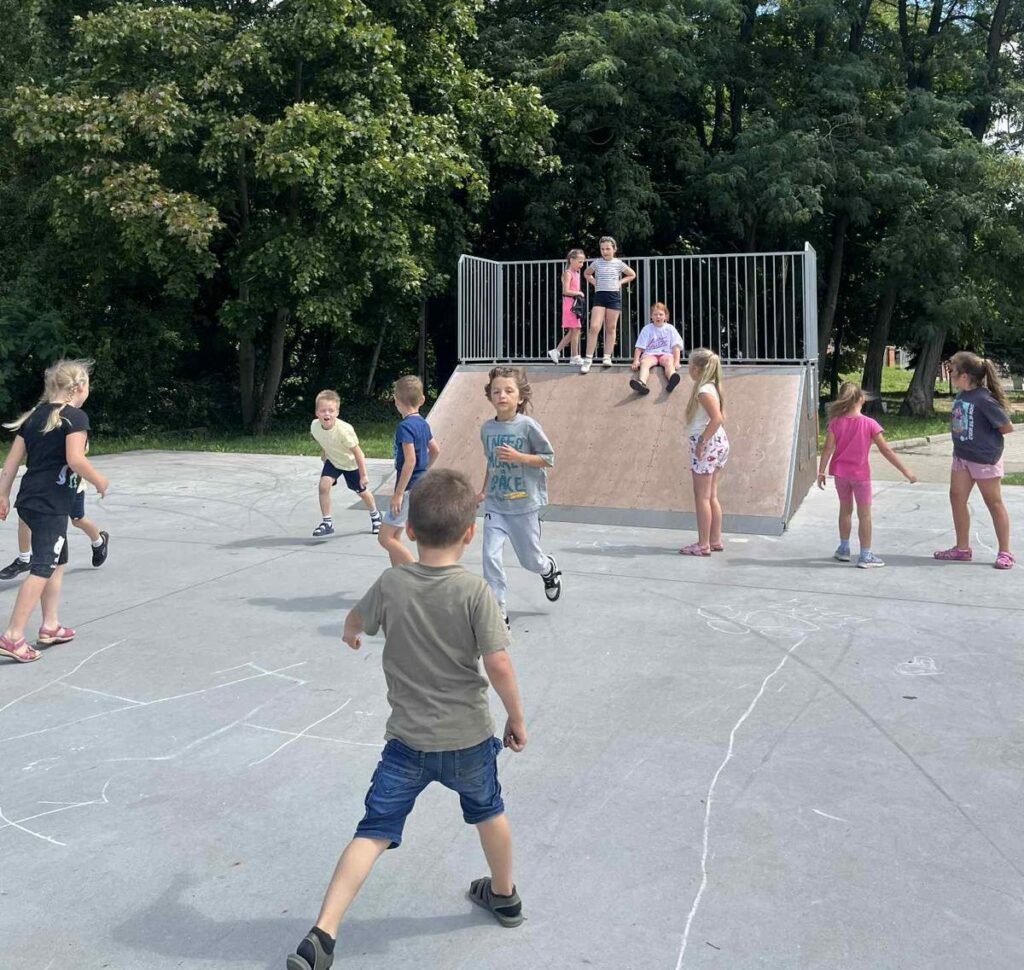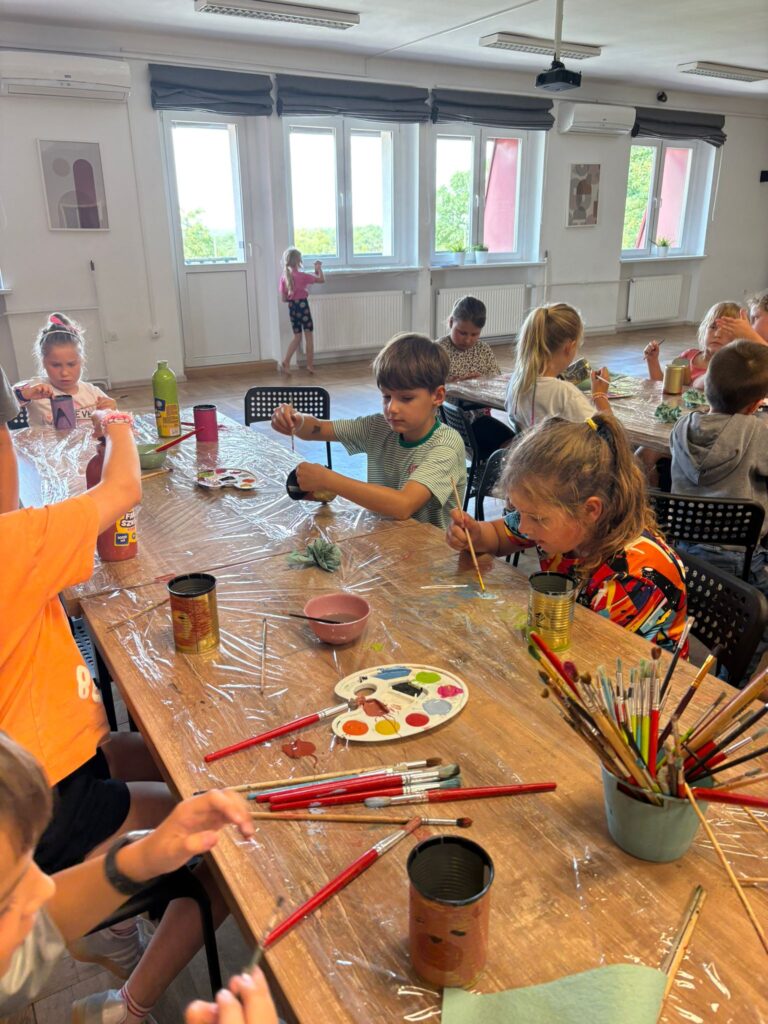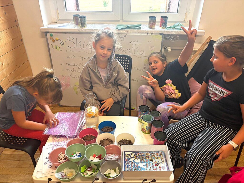 Czas na krótkie podsumowanie ostatnich dni pierwszego tygodnia II turnusu półkolonii z CK! Razem z Anitą Szymanowską przygotowywaliśmy się dalej do występu na Dniach Książa Wlkp.’2025, z którego jesteśmy mega dumni 😉 Oprócz tego zaliczyliśmy lekcje chińskiego oraz kaligrafii w bibliotece, zajrzeliśmy do Anety Ptak, która pokazała nam hodowane pawie oraz świetnie się bawiliśmy w terenie – na skateparku oraz placu zabaw. Był również czas na wykonanie różnych zadań plastycznych oraz… otwarcie własnych biznesów! 😉