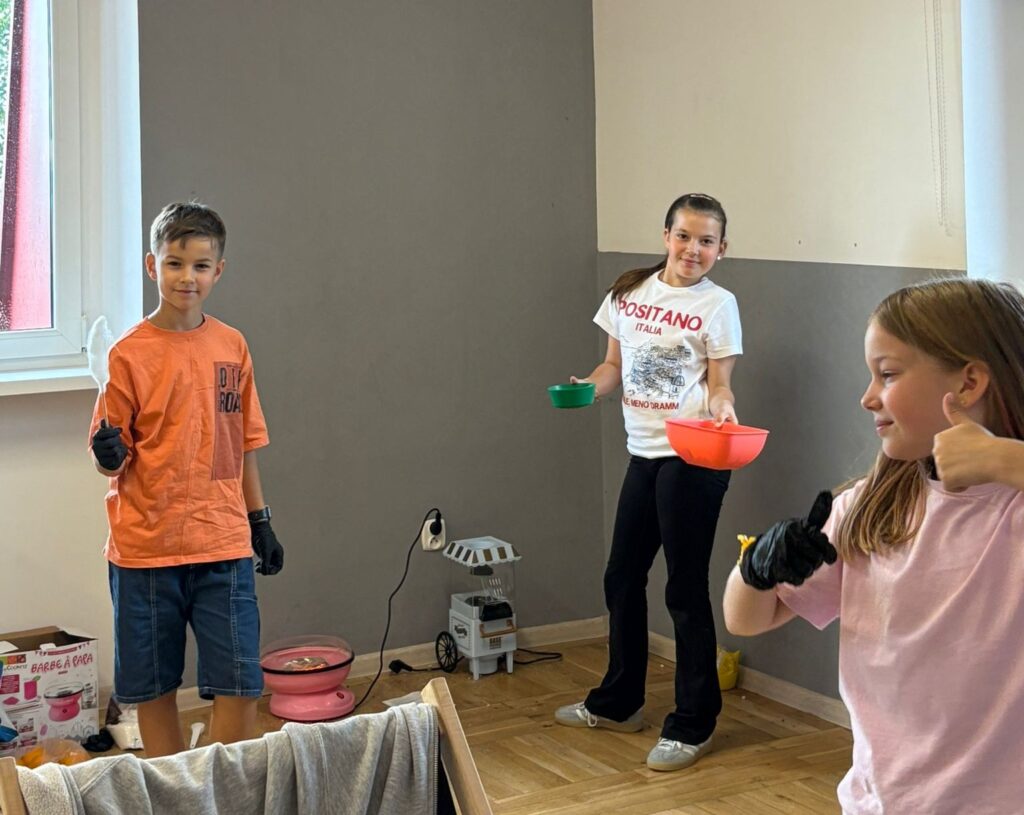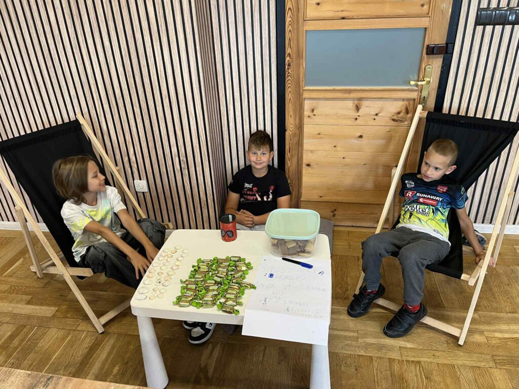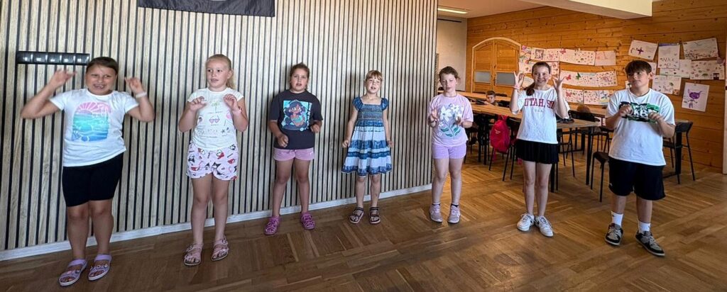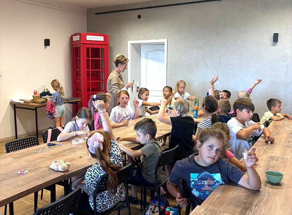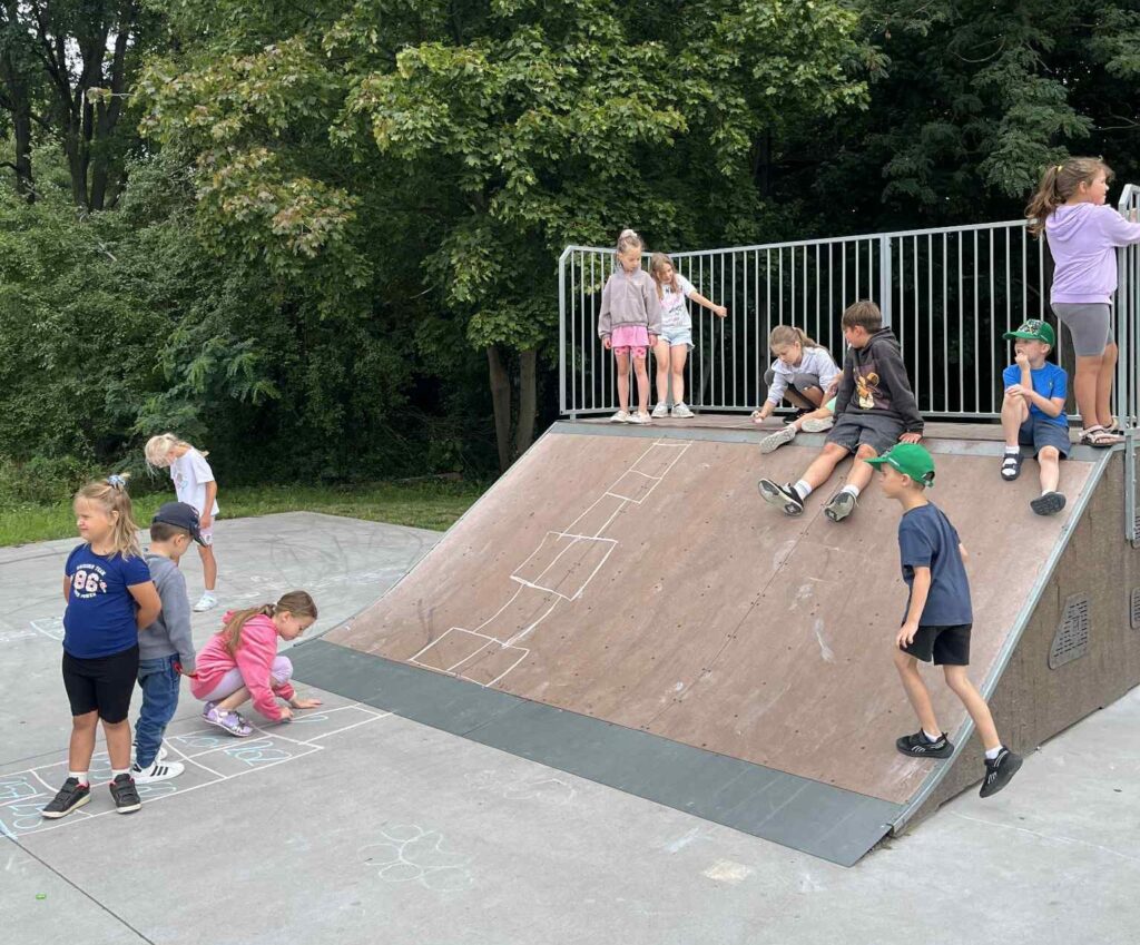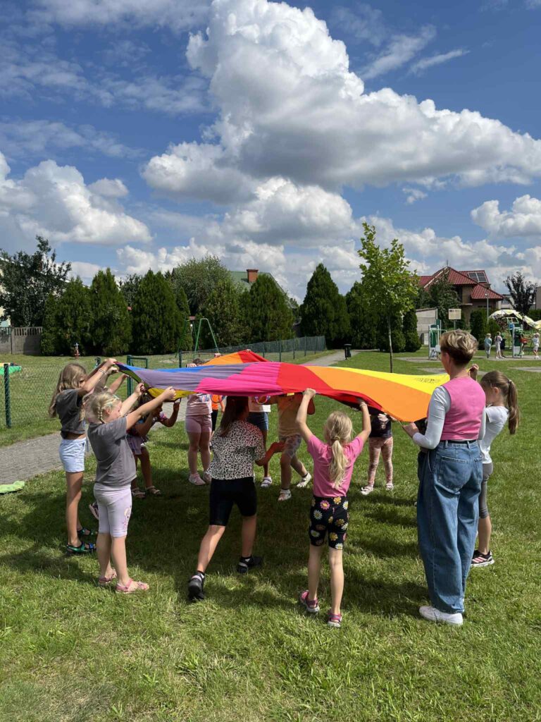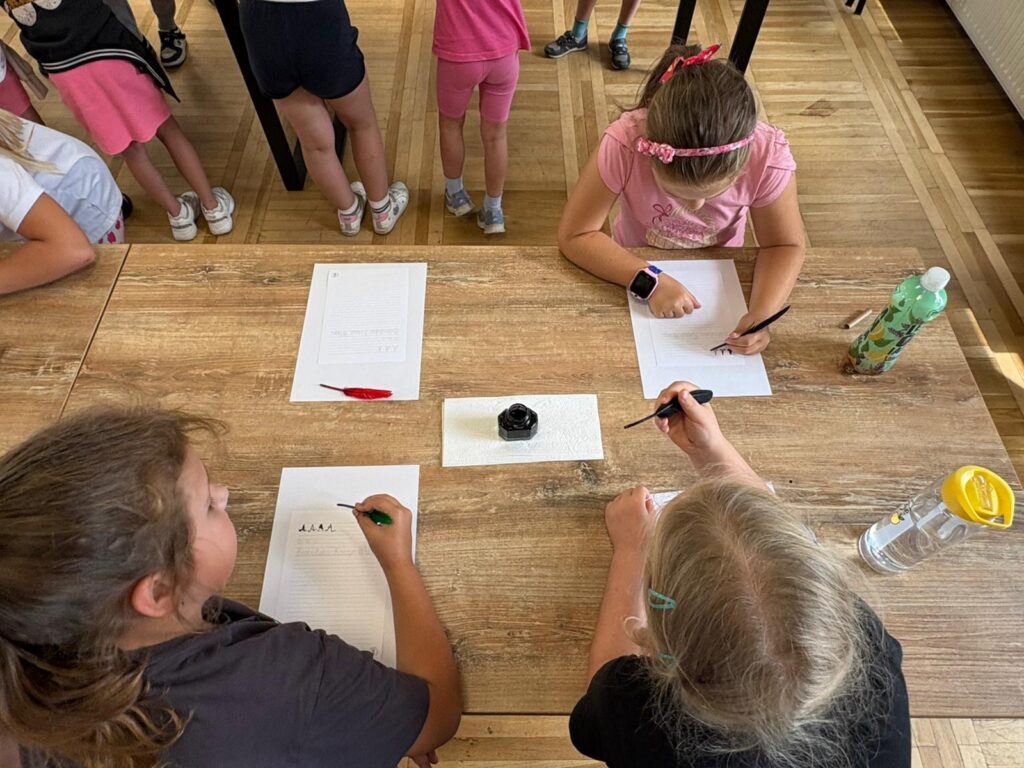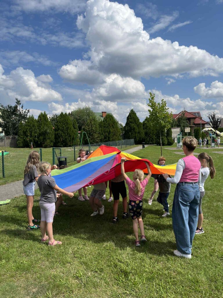 Czas na krótkie podsumowanie ostatnich dni pierwszego tygodnia II turnusu półkolonii z CK! Razem z Anitą Szymanowską przygotowywaliśmy się dalej do występu na Dniach Książa Wlkp.’2025, z którego jesteśmy mega dumni 😉 Oprócz tego zaliczyliśmy lekcje chińskiego oraz kaligrafii w bibliotece, zajrzeliśmy do Anety Ptak, która pokazała nam hodowane pawie oraz świetnie się bawiliśmy w terenie – na skateparku oraz placu zabaw. Był również czas na wykonanie różnych zadań plastycznych oraz… otwarcie własnych biznesów! 😉