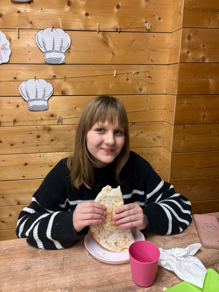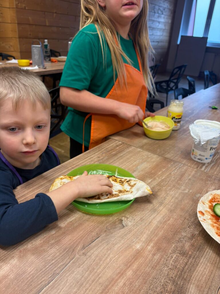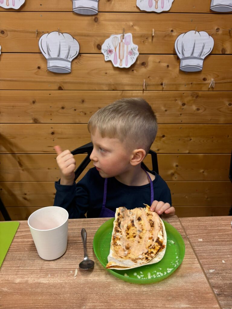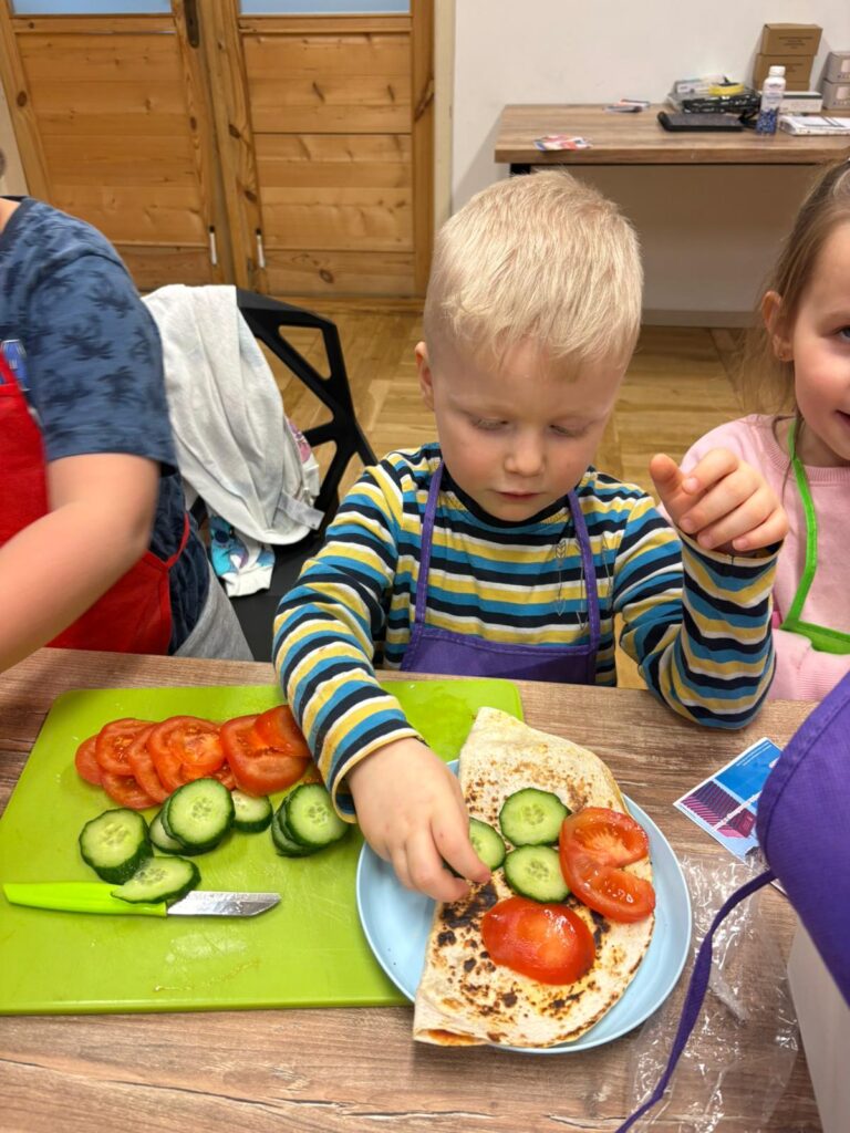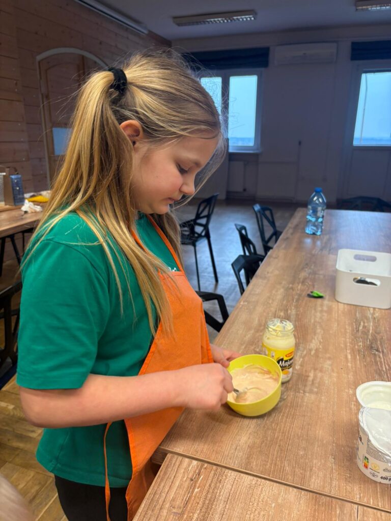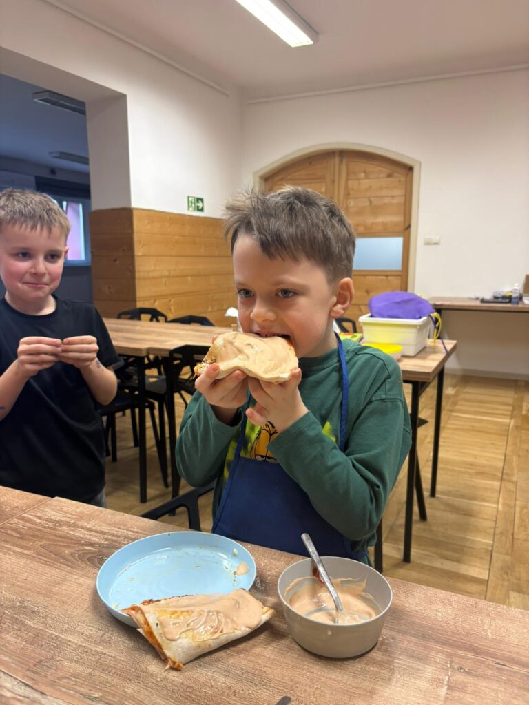 Podczas warsztatów kulinarnych (16.02.2026) przygotowywaliśmy smakowite tortille z szynką, serem oraz świeżymi warzywami!