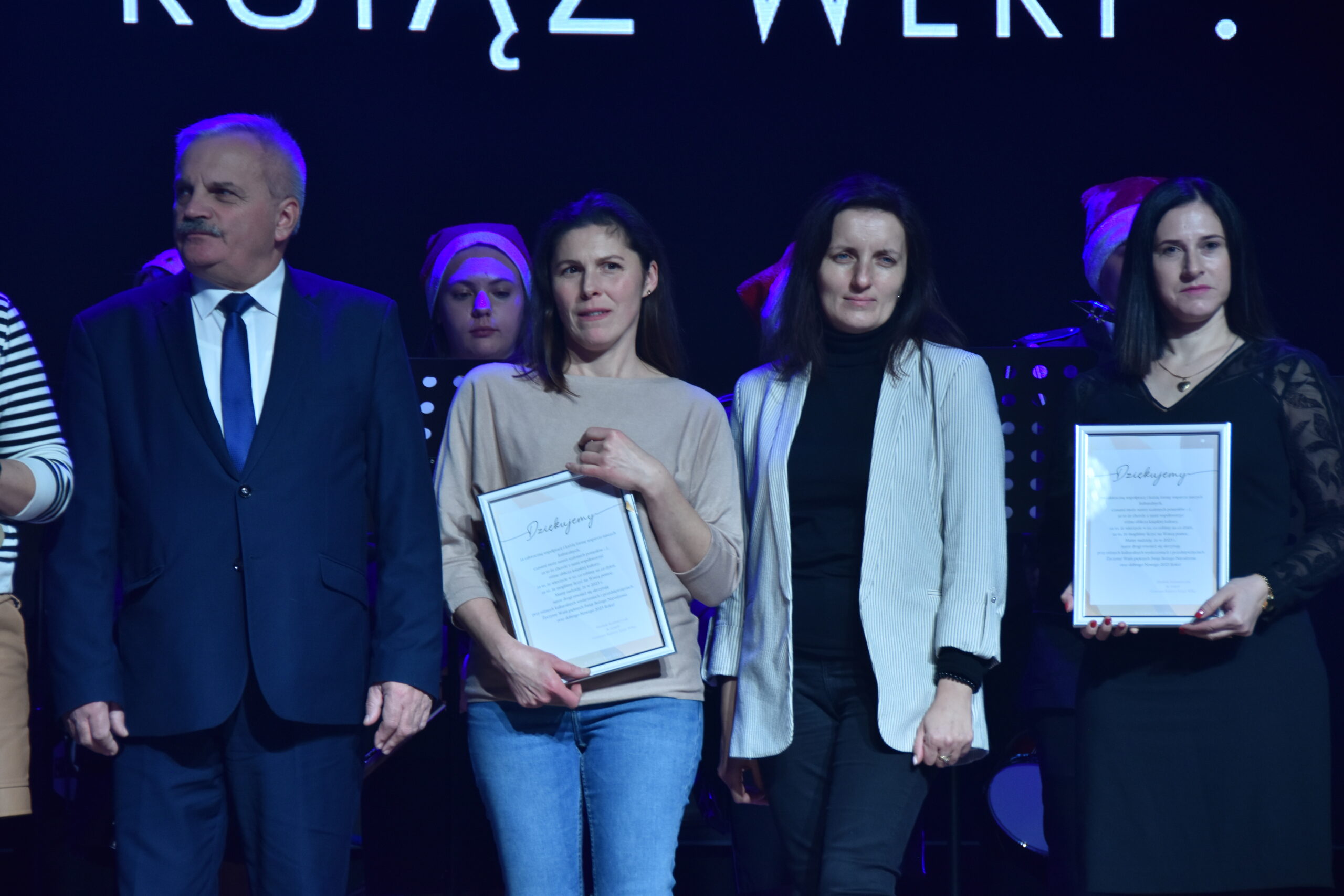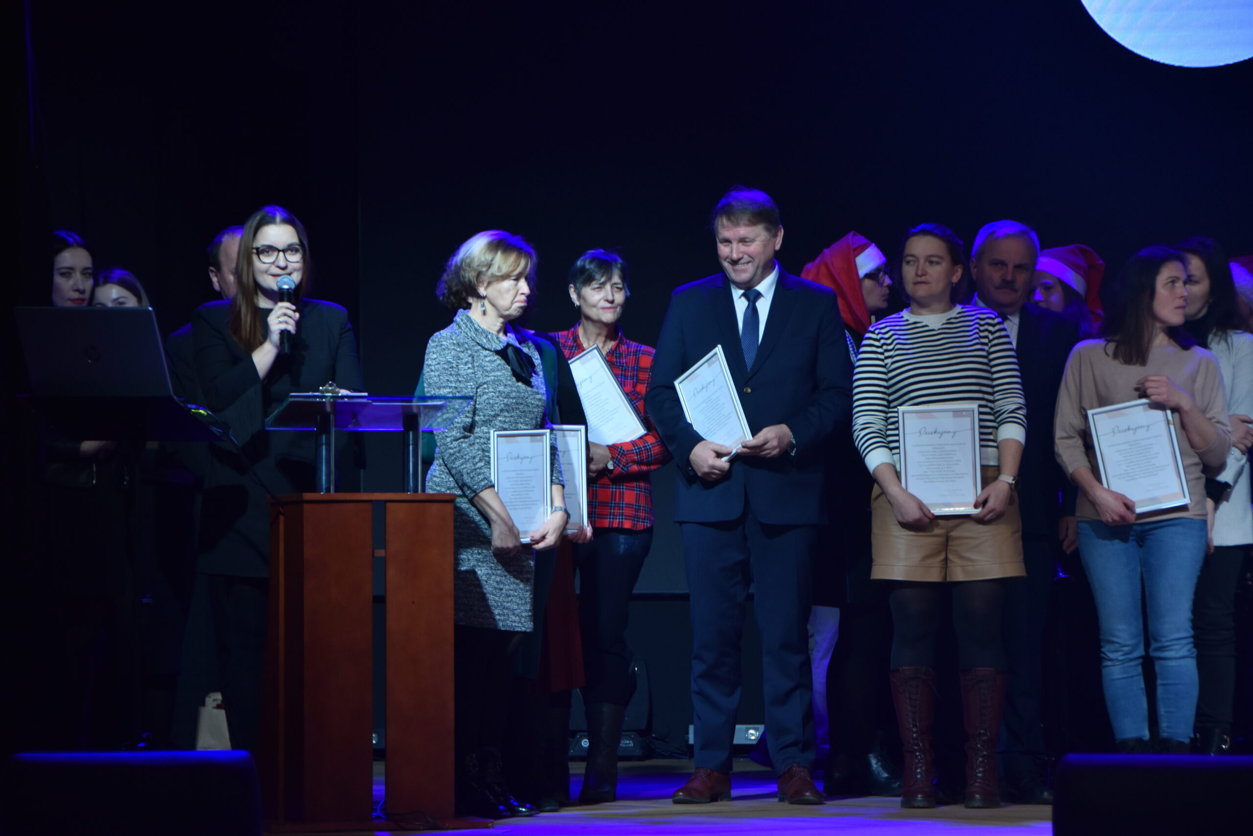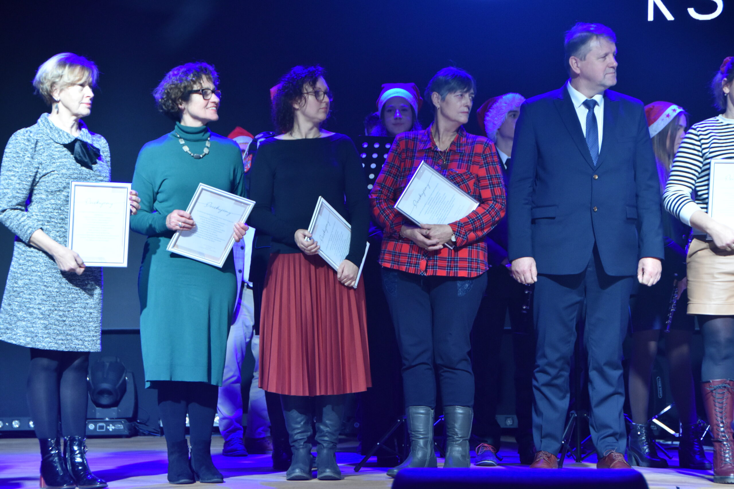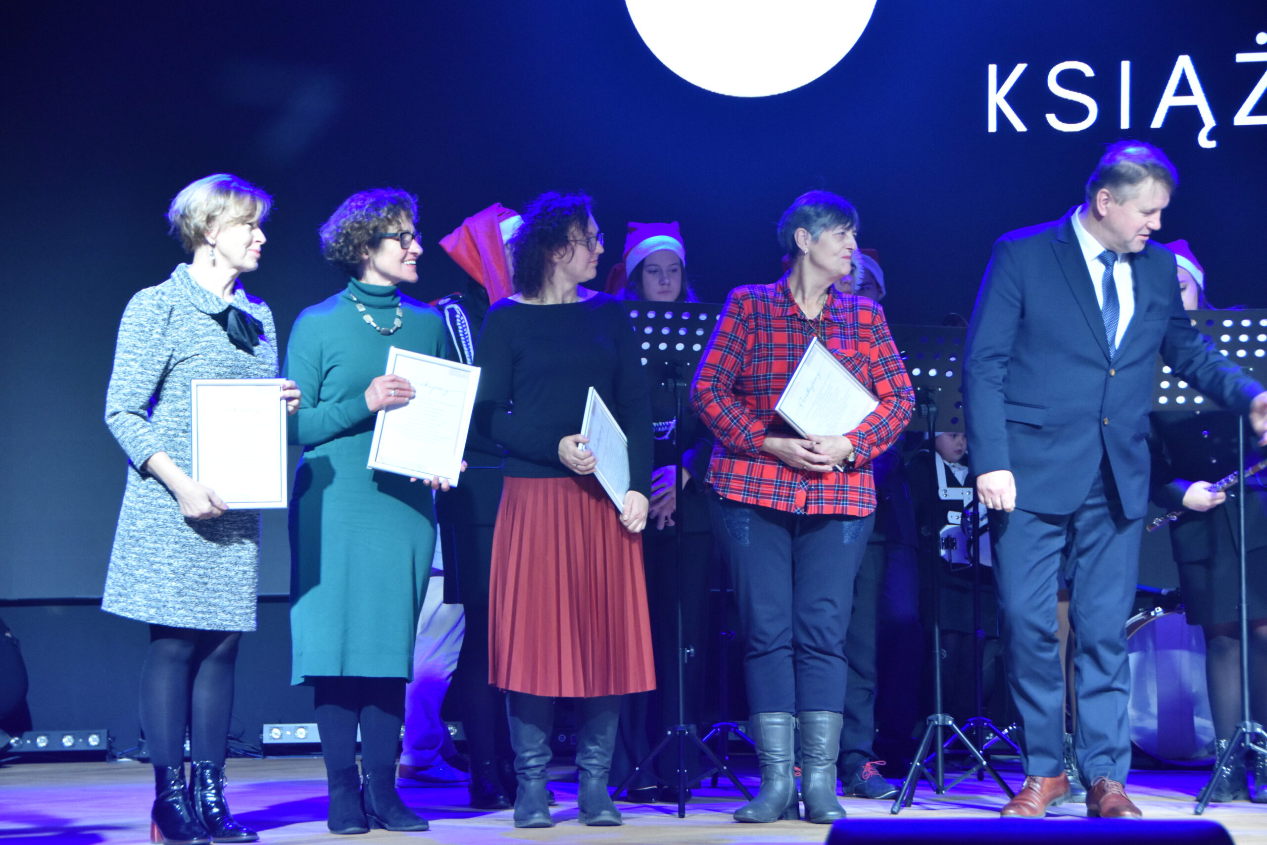 Między występami wręczone zostały nagrody laureatom tegorocznego konkursu plastycznego na kartkę świąteczną ogłoszonego przez CK, a dokonał tego burmistrz Książa Wlkp. Teofil Marciniak.