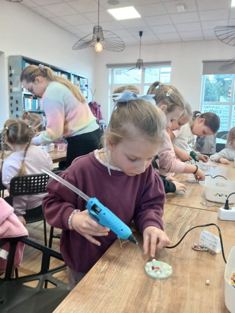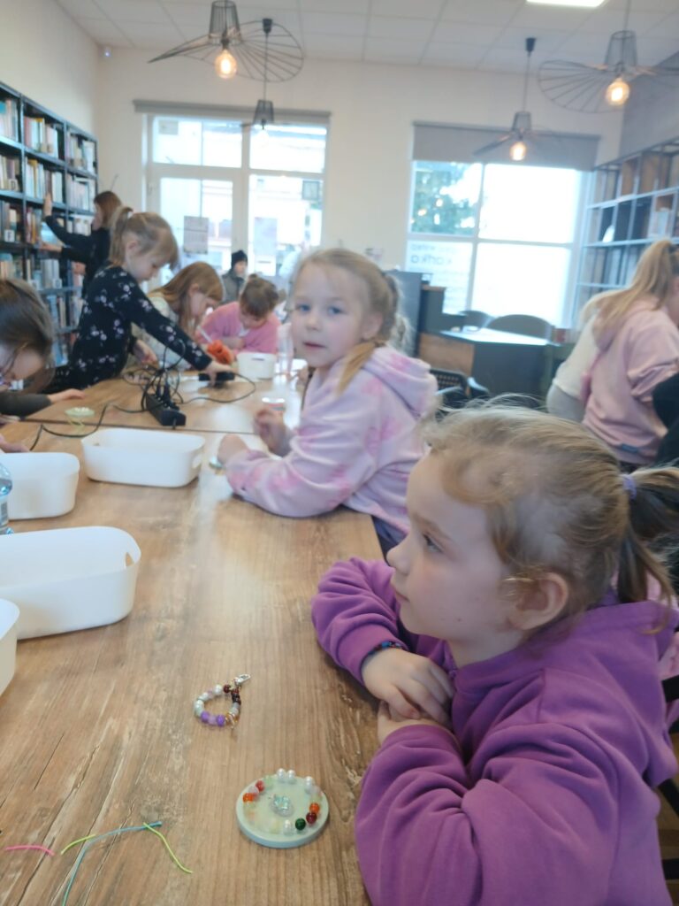 Bransoletki, breloki i lusterka z koralików wykonały dla siebie 22 małe kobietki, które wzięły udział w warsztatach DIY w bibliotece. Była to jedna z naszych kulturalno-bibliotecznych propozycji dla najmłodszych czytelniczek z okazji Dnia Kobiet. Zobaczcie sami, jakie cudeńka z zrobiły!