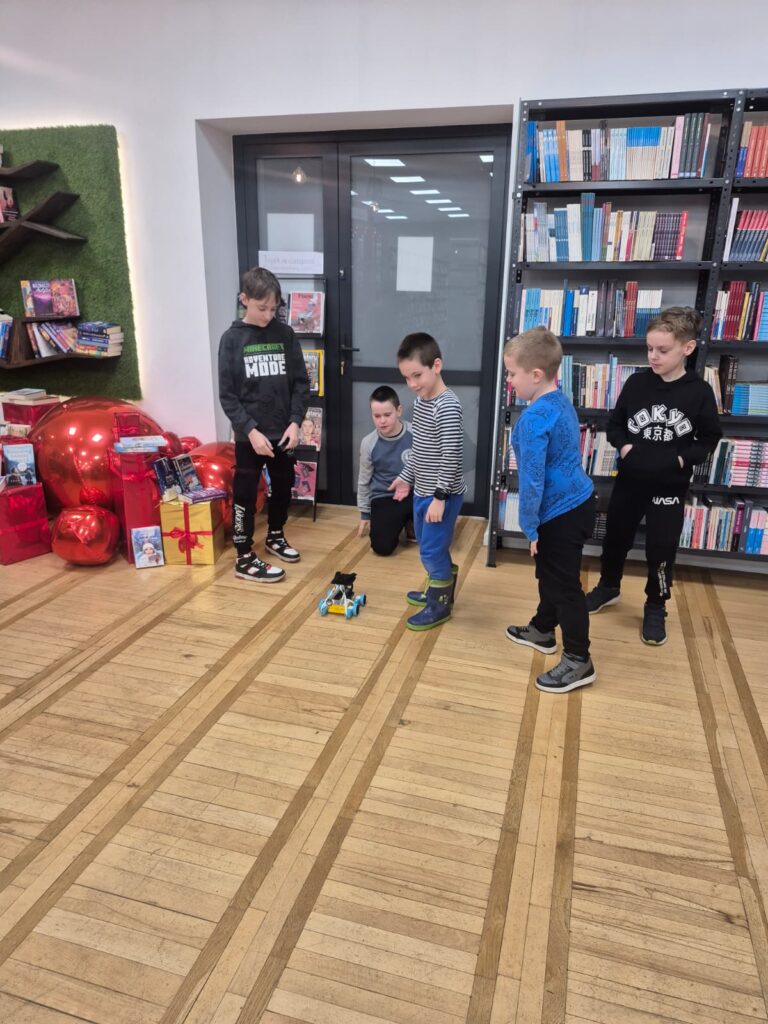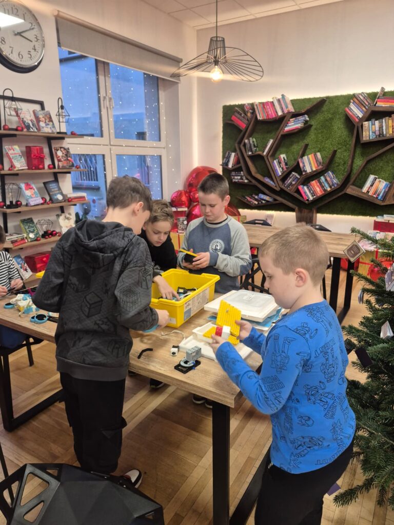 Na robotyce 9.12 w bibliotece uczestnicy mieli za zadanie wykonanie projektu według własnego pomysłu. W efekcie powstał robot z dwoma akumulatorami i aż czterema silnikami!