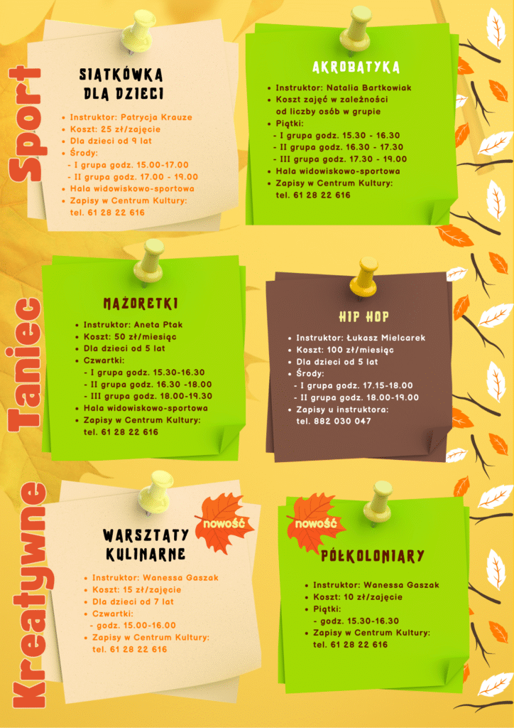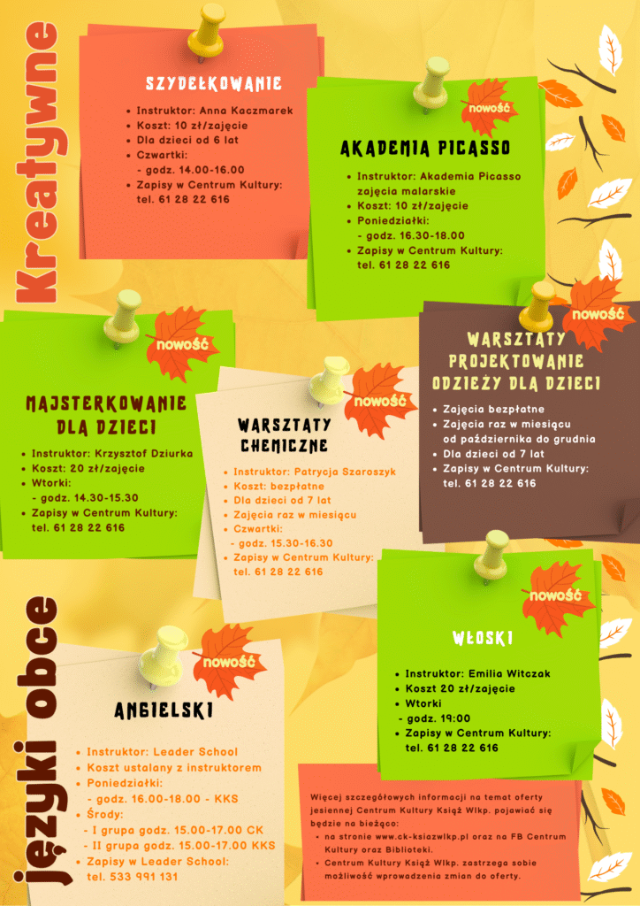 🏖⛵⛱🧳🧳Koniec wakacji i powrót do szkoły oznaczają, że w Centrum Kultury ruszamy z… kulturalną ofertą jesienną dla dzieci! 🍁🍂🍁🍂 Co tym razem zaplanowaliśmy dla najmłodszych? Sprawdźcie nasze propozycje! 👇👇👇
