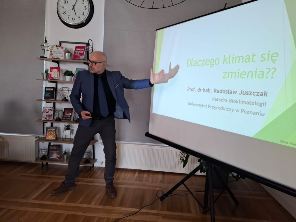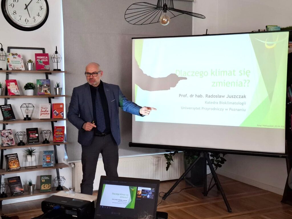 Jak ekstremalne zjawiska pogodowe (np. burze, powodzie) wpływają na zmianę klimatu? O tym m.in. opowiedział prof. dr hab. inż. Radosław Juszczak z Katedry Bioklimatologii Wydział Inżynierii Środowiska i Inżynierii Mechanicznej Uniwersytetu Przyrodniczego w Poznaniu. Udowadniał również, że za globalne ocieplenie odpowiedzialne są antropogeniczne emisje gazów szklarniowych do atmosfery. A efektem jest, chociażby najszybciej „rozmrażająca” się Grenlandia.
