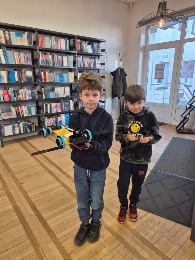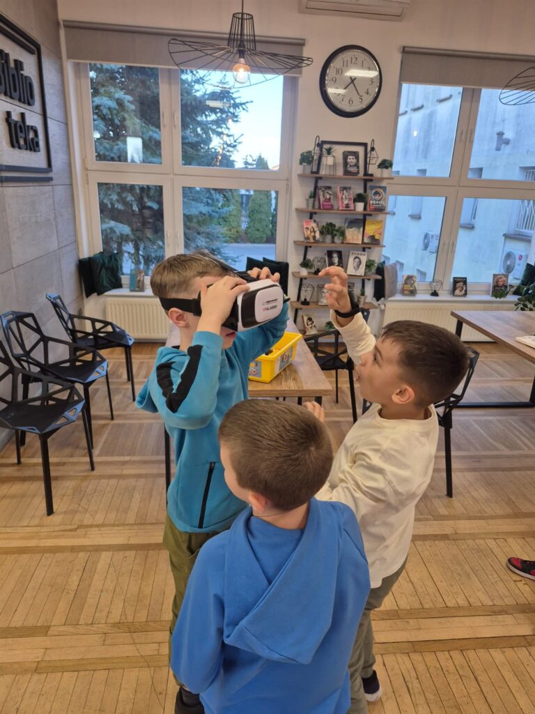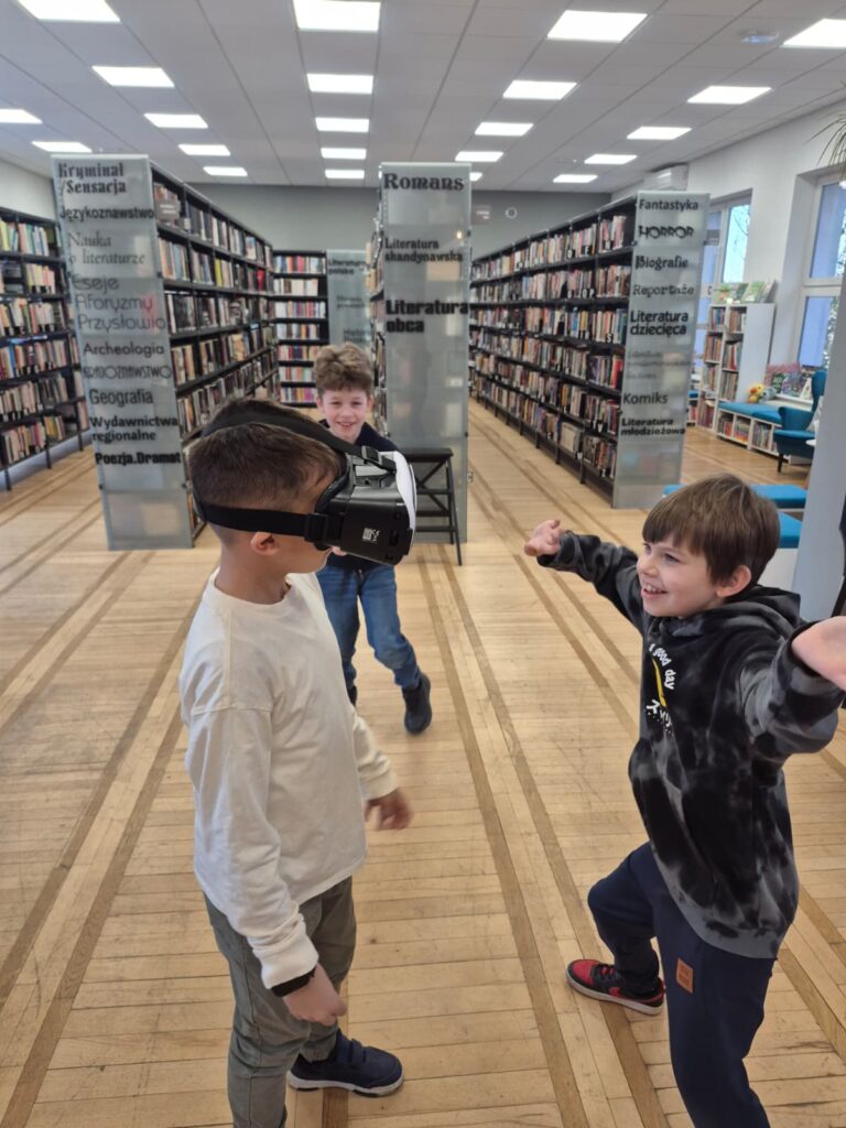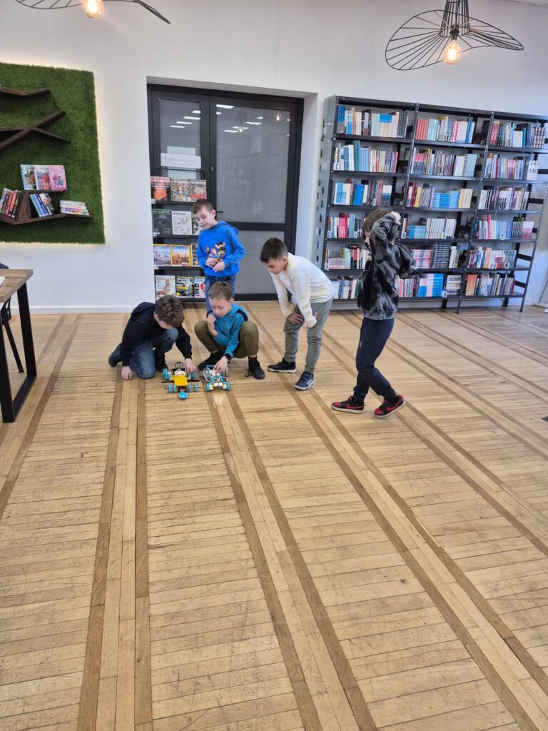 Na pierwszej po feriach robotyce (3 marca) uczestnicy w grupach zbudowali dwa pojazdy z klocków Lego. Następnie urządzili nimi wyścigi po bibliotece, testując nie tylko ich prędkości, ale także wytrzymałość. Z kolei dzięki okularom VR mieli okazje przenieść się do Parku Jurajskiego.