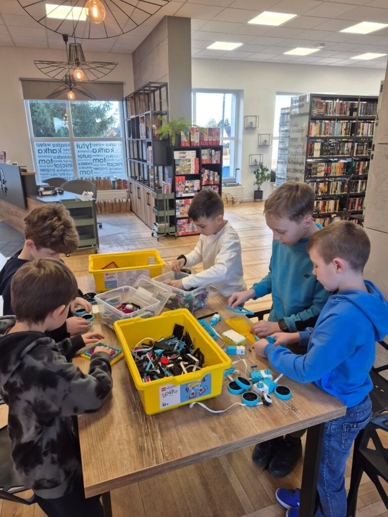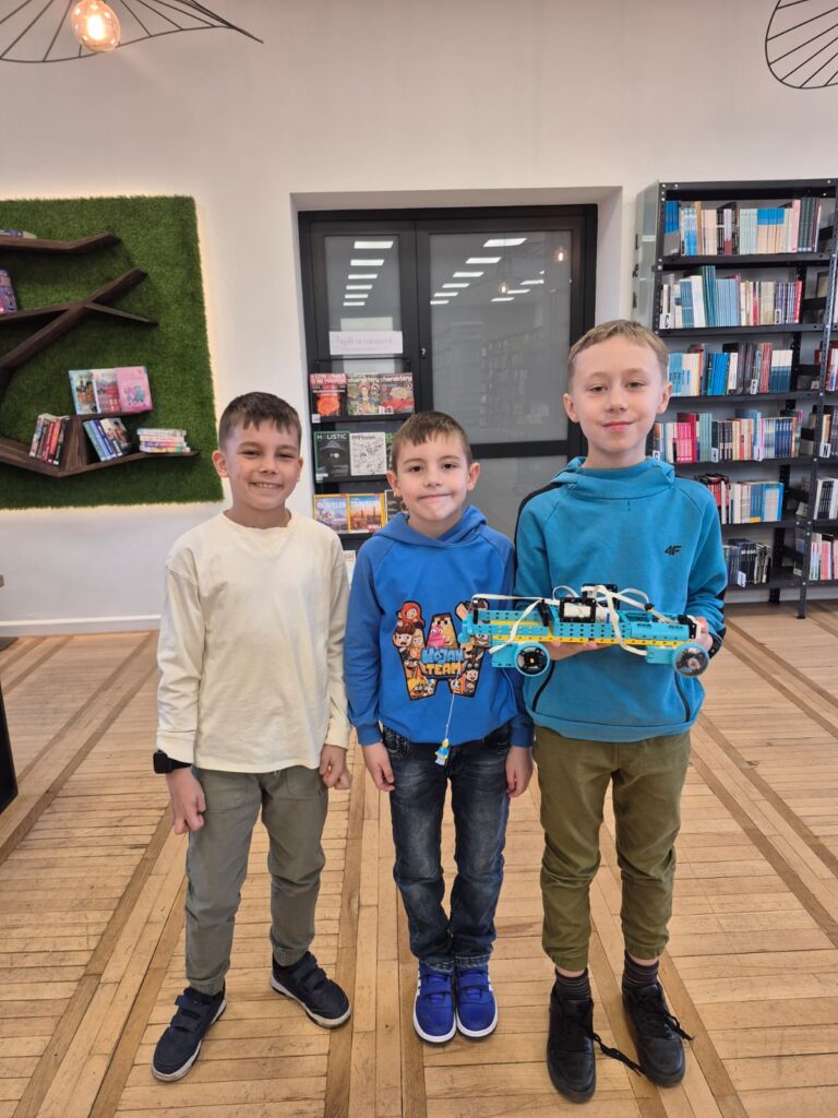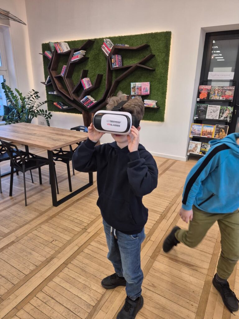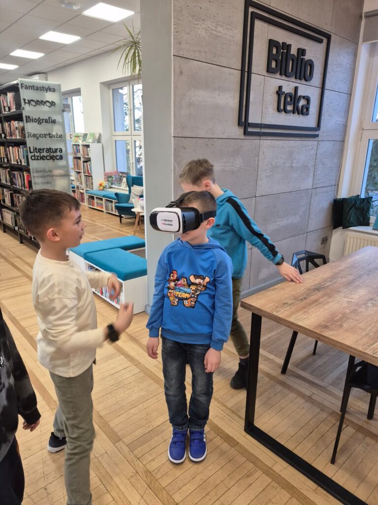 Na pierwszej po feriach robotyce (3 marca) uczestnicy w grupach zbudowali dwa pojazdy z klocków Lego. Następnie urządzili nimi wyścigi po bibliotece, testując nie tylko ich prędkości, ale także wytrzymałość. Z kolei dzięki okularom VR mieli okazje przenieść się do Parku Jurajskiego.