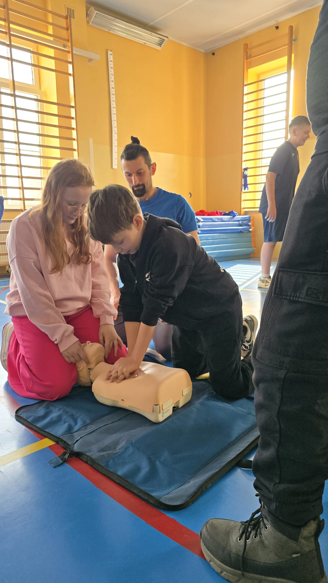 Uczniowie Szkoły Podstawowej we Mchach poznali tajniki radzenia sobie w sytuacjach zagrażających ich zdrowiu i życiu. Nauczyli się także podstaw udzielania pierwszej pomocy. Obie kwestie omówili i przećwiczyli z nimi: Dominik Jankowiak z Akademii Ruchu Śrem i Daniel Kaźmierczak z OSP Mchy.