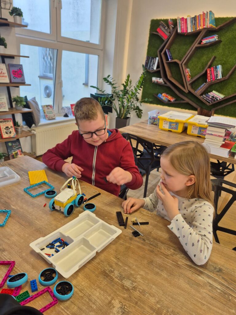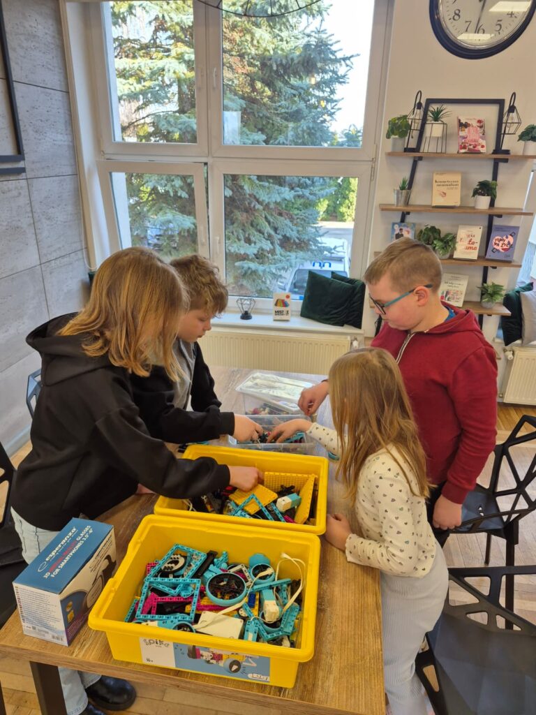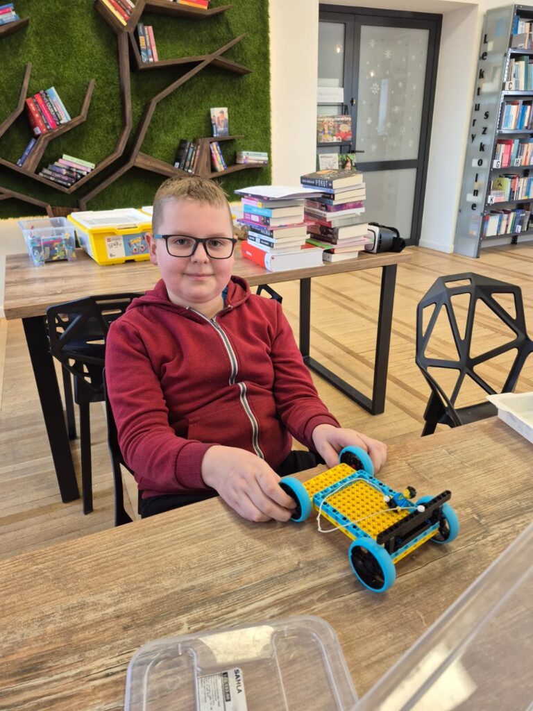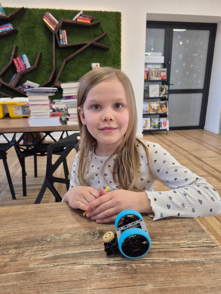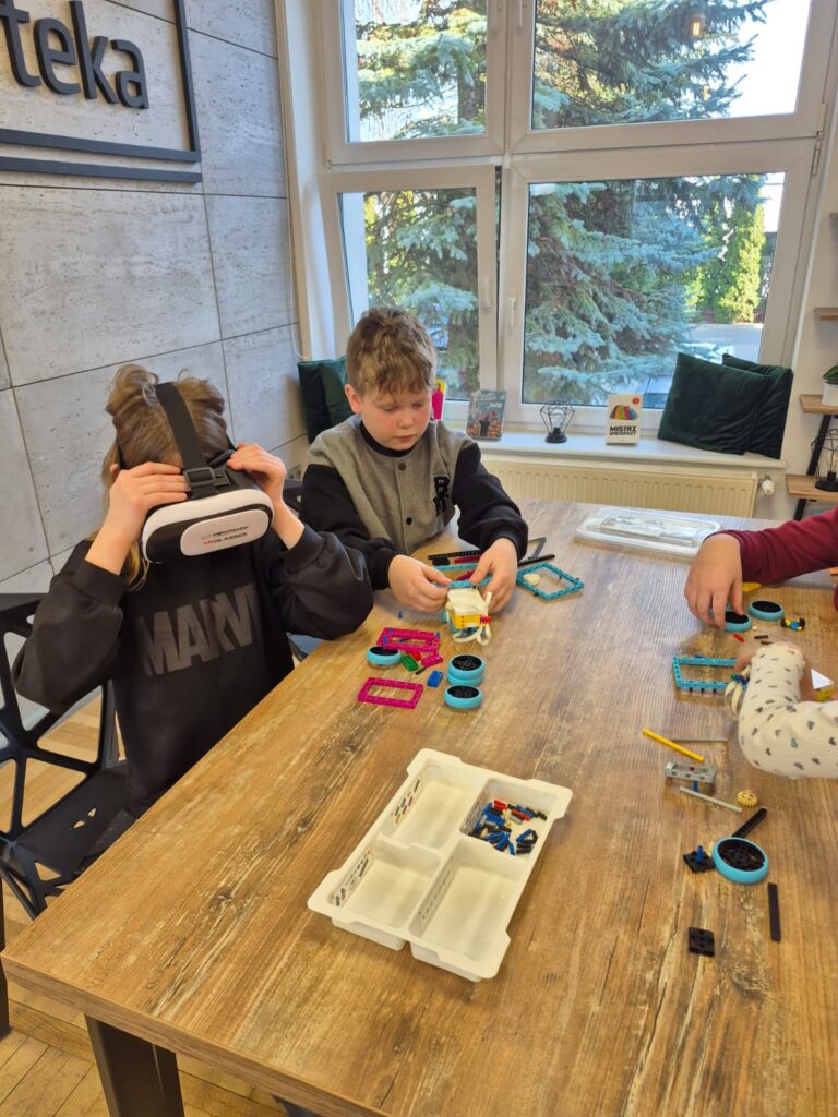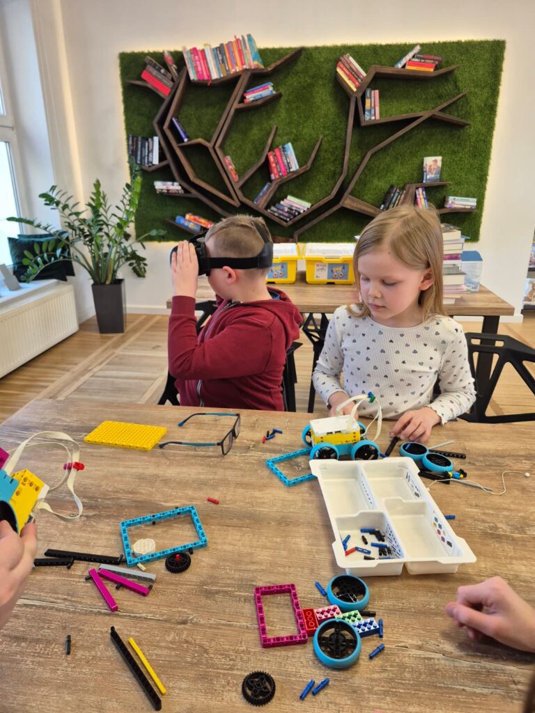 Na ostatniej feryjnej robotyce (25.02) bawiliśmy się okularami VR oraz urządziliśmy wyścigi robotów po bibliotece.