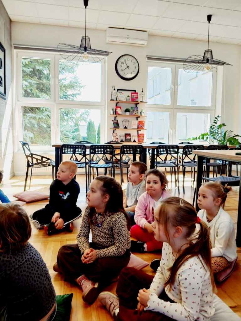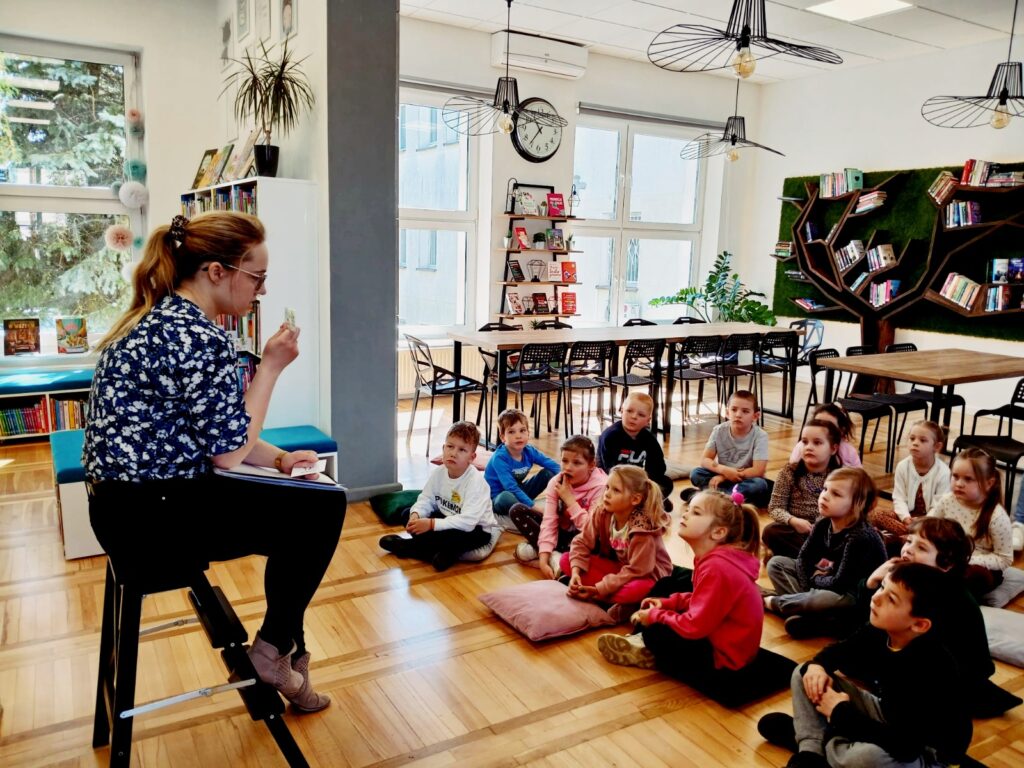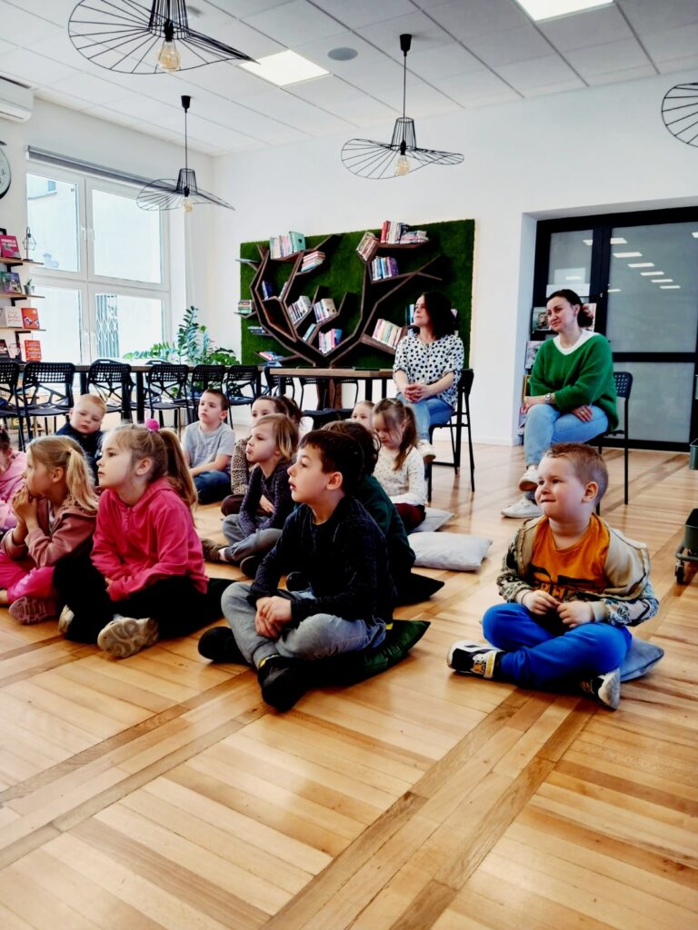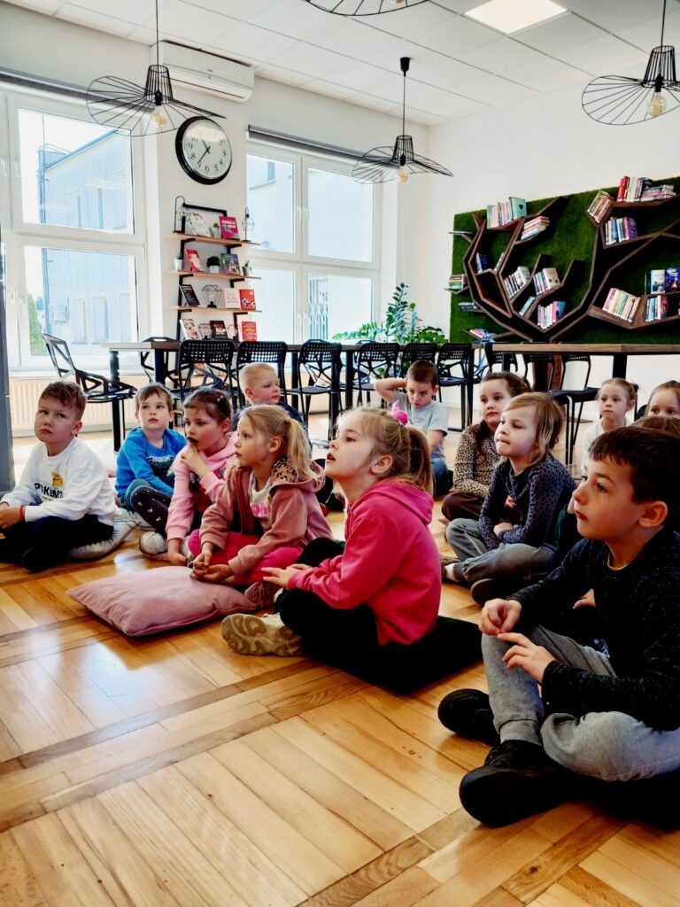 📚🐸 Wczoraj naszą bibliotekę odwiedziła grupa „Żabki” z przedszkola 🏫✨ w ramach lekcji bibliotecznej. Dla wielu dzieci była to pierwsza wizyta u nas 📖👧👦 – ale już zapowiedziały, że na pewno nie ostatnia 😊💛.