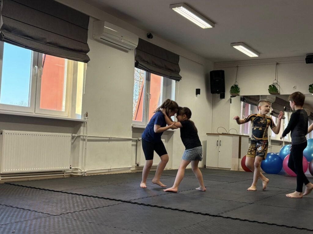 Uczestnicy tych warsztatów pod okiem instruktora – Piotra Nowaka, mieli okazję poznać podstawowe techniki, chwyty i zasady jiu-jitsu, ćwiczyć równowagę, koordynację i współpracę. Było mnóstwo ruchu, zabawy i sportowych emocji