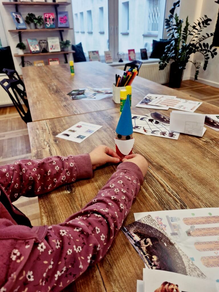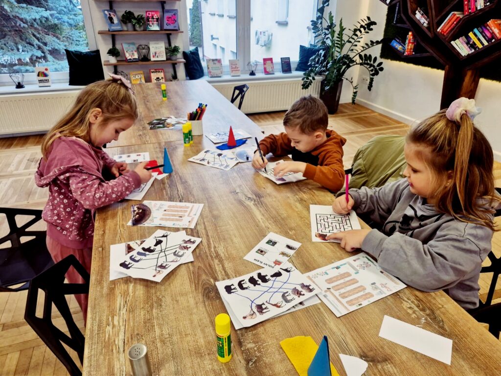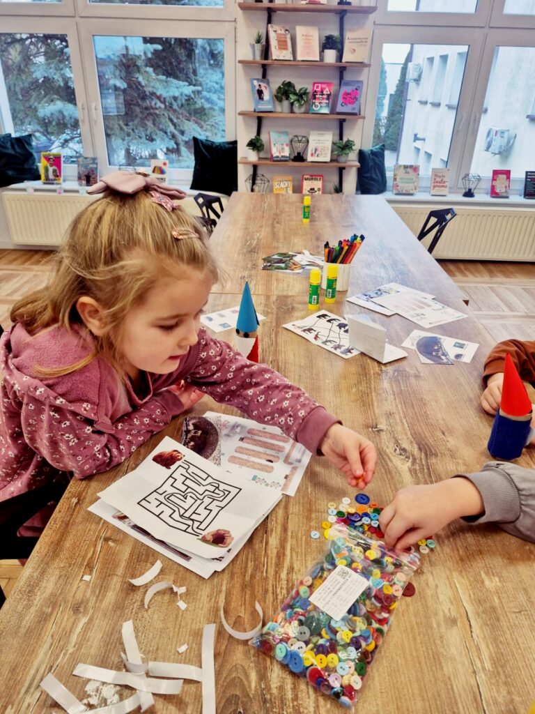 Wczorajsze podchody biblioteczne odbyły się w konwencji escape roomu. Młodsza grupa uczestników musiała odczytać mapę biblioteki, a także szlak prowadzący przez miejsca związane z Dolnym Śląskiem oraz zmierzyć się z serią zadań i wyzwań, dzięki którym zdobyli materiały potrzebne do wykonania wrocławskich krasnali