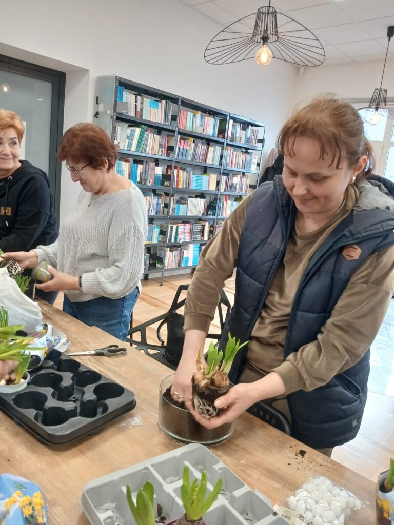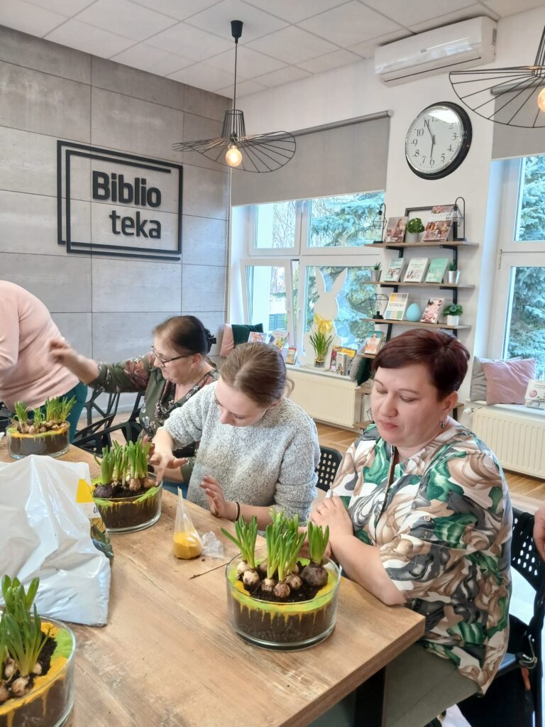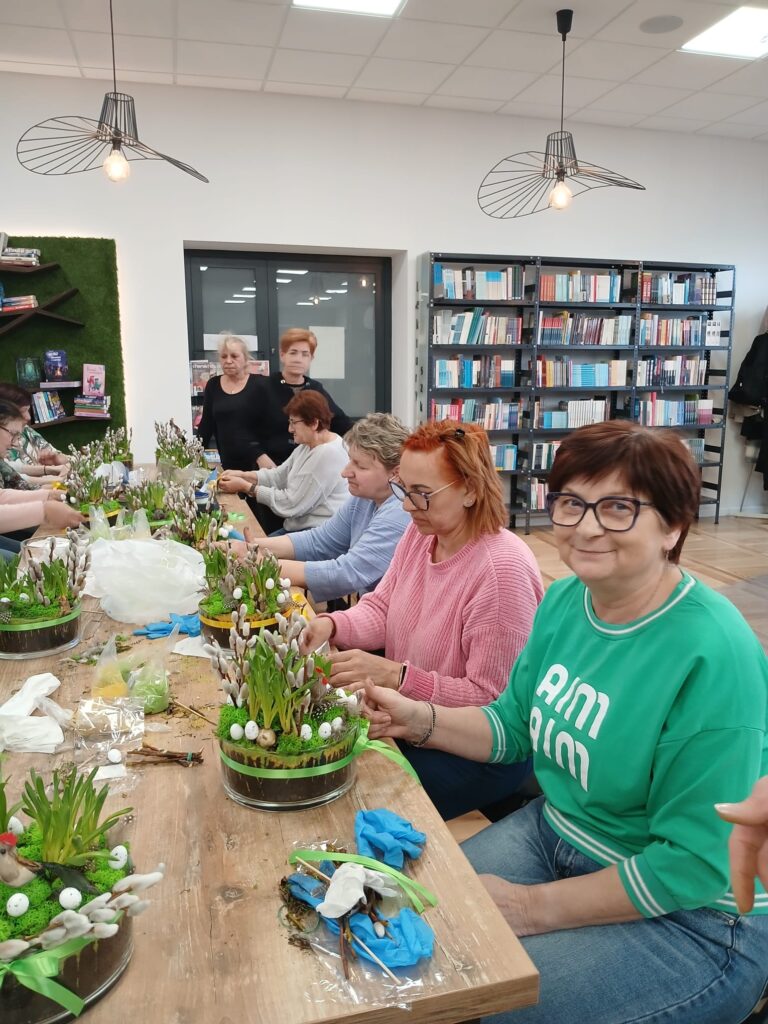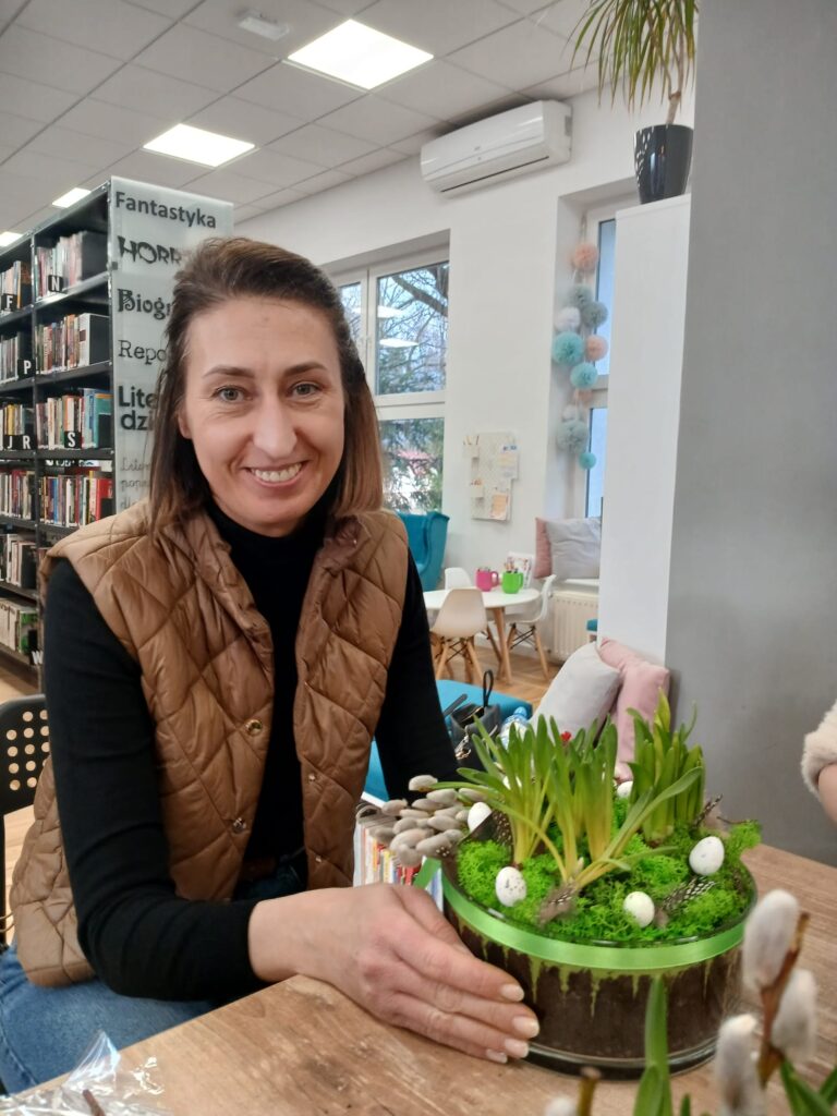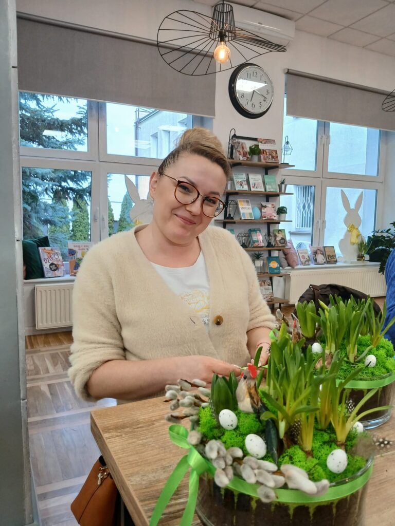 Wielkanocna kompozycja florystyczna powstała na wtorkowych warsztatach z Anną Ajnbacher w bibliotece. Ich uczestniczki z roślin oraz elementów ozdobnych wykonały piękne dekoracje prosto na świąteczny stół! Przekonajcie się sami! 😉